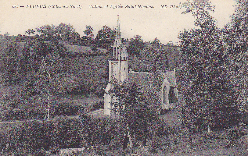 Plufur : chapelle Saint-Nicolas, vue générale depuis Trémel, carte postale (collection particulière)Immatriculation