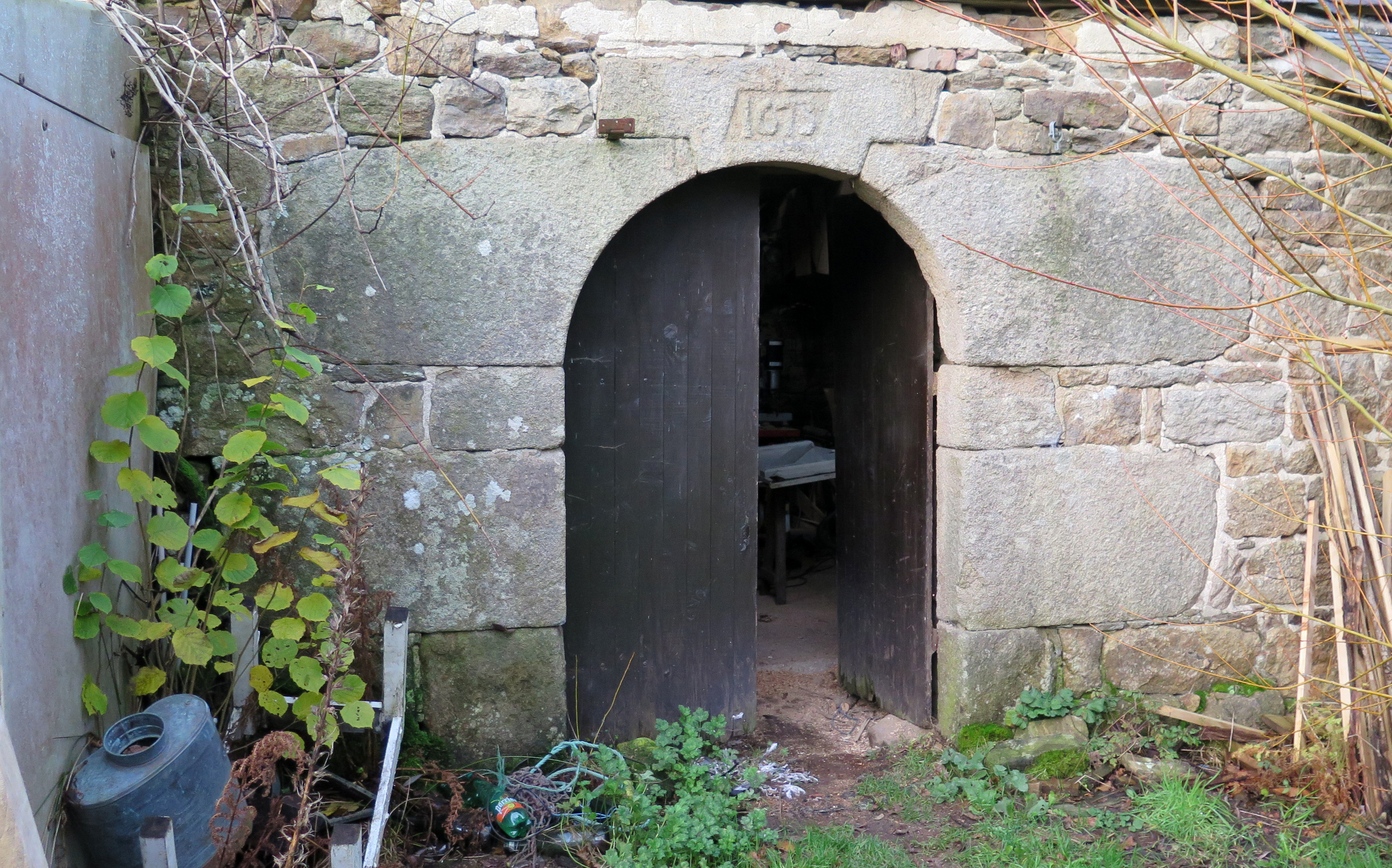 Plufur, Guern ar Hastel : long bâtiment à usage de dépendance agricole (?) : la porte sud en arc plein cintre porte le millésime 1673Immatriculation