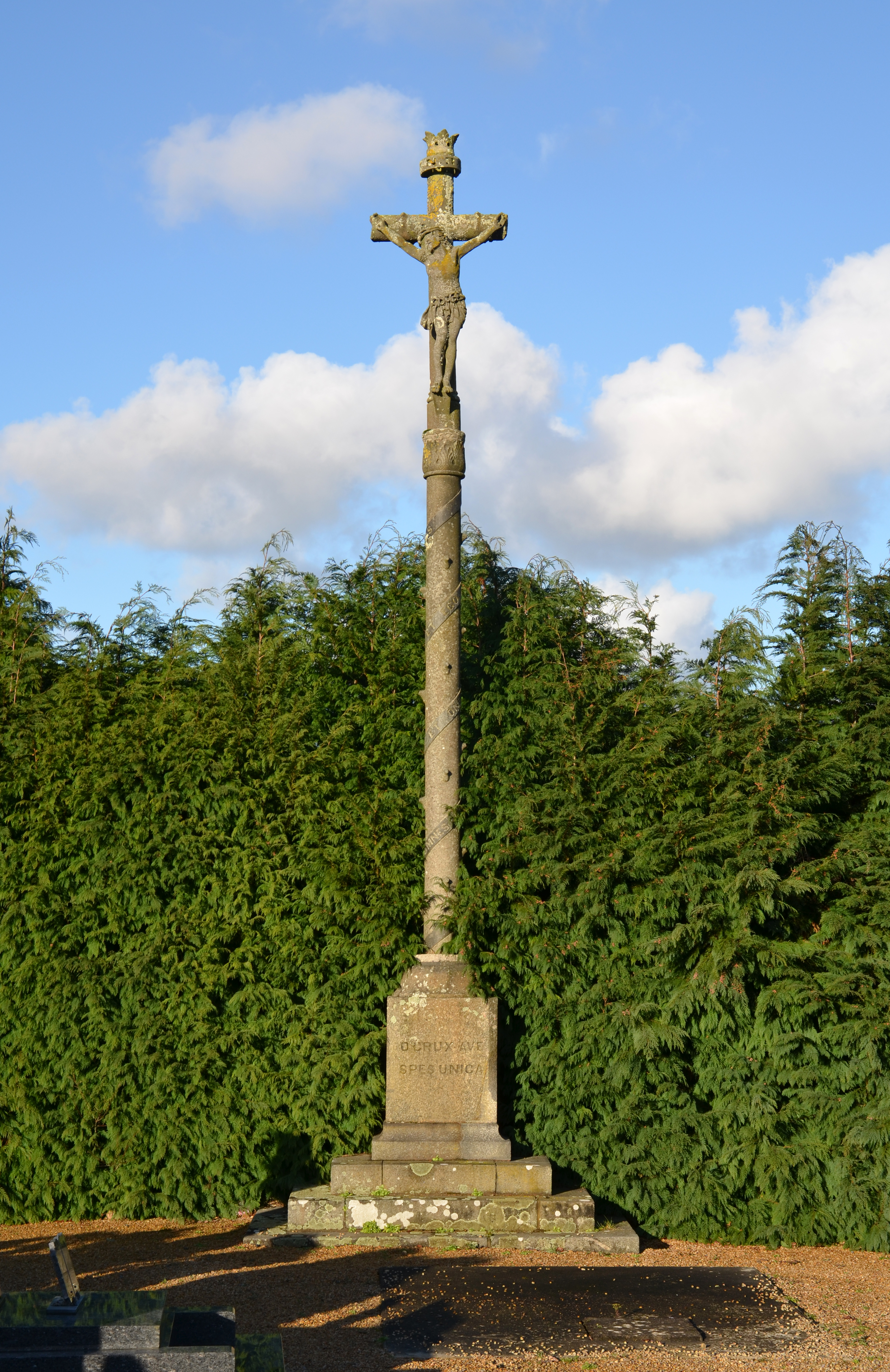 Plufur : croix de mission du cimetière. Datée de 1865, elle a été déplacée dans le nouveau cimetière en 1973Immatriculation