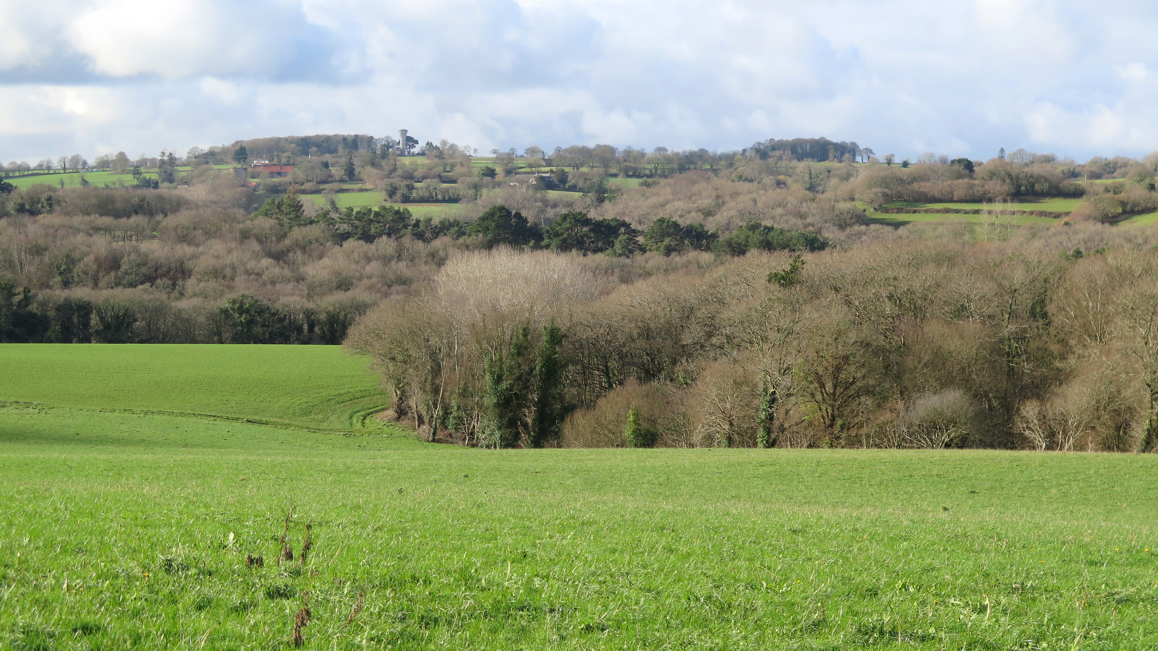 Plufur : vue paysagère des environs de Roz Salaün vers Plestin-Les-Grèves au nord-ouestImmatriculation