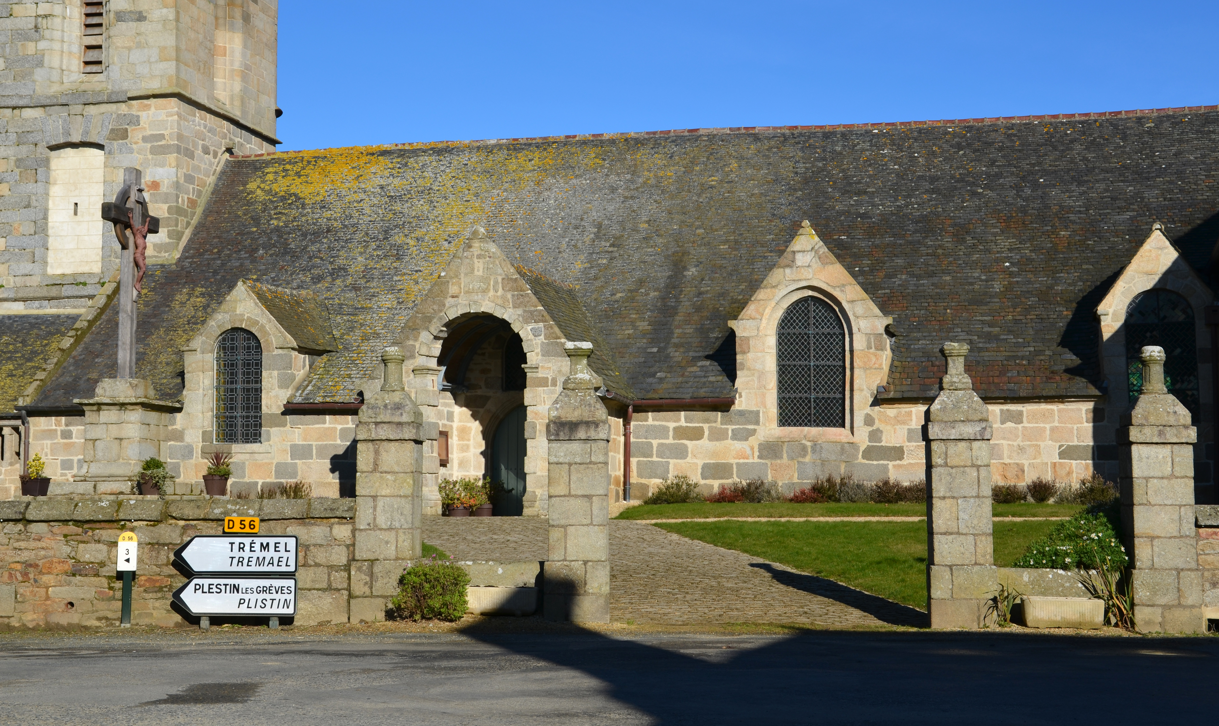 Plufur, le bourg : église paroissiale Saint-Florent, entrée sud de l'enclosImmatriculation