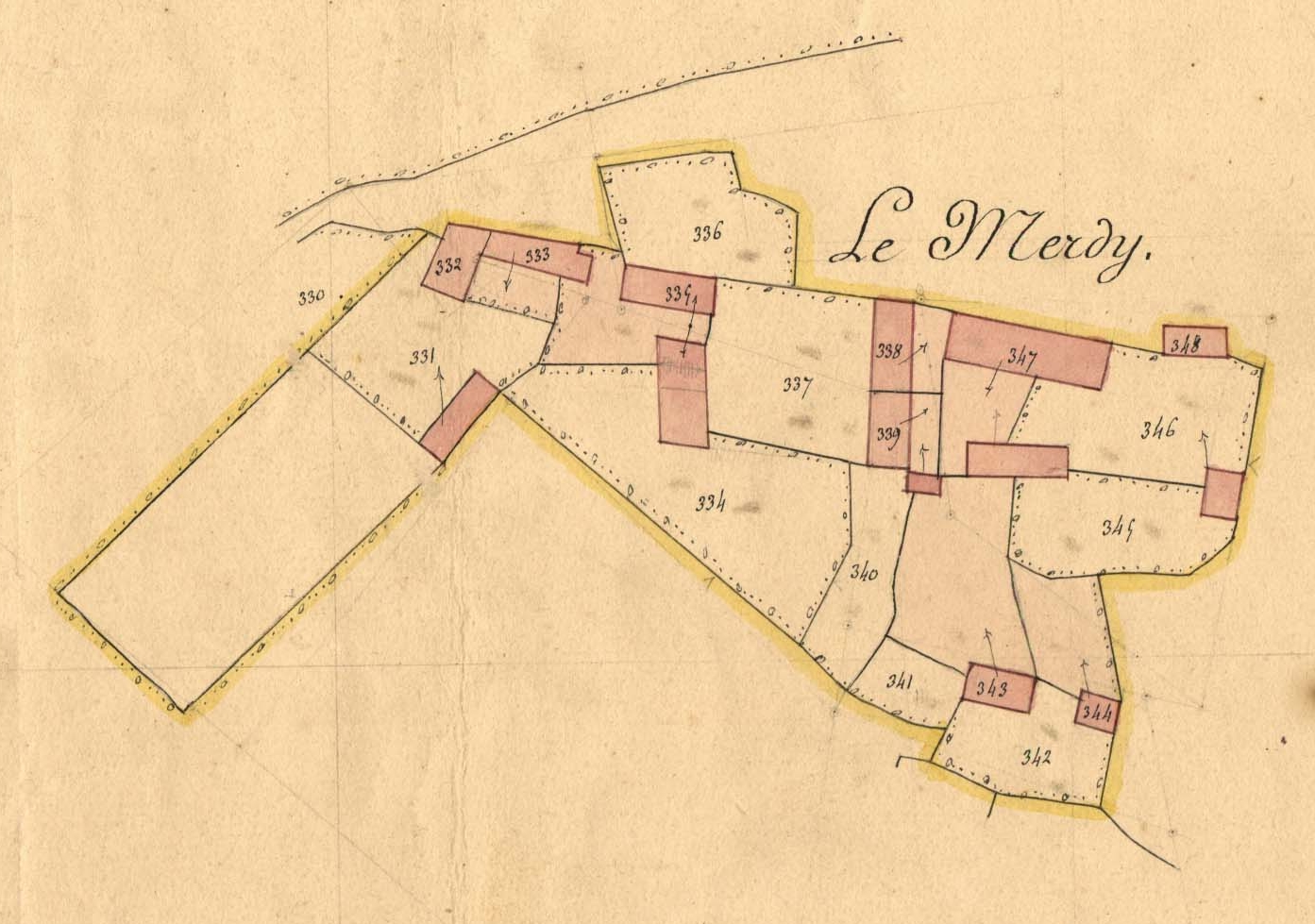 Extrait du cadastre ancien de la commune de Plufur, 1848 : Le MerdyImmatriculation