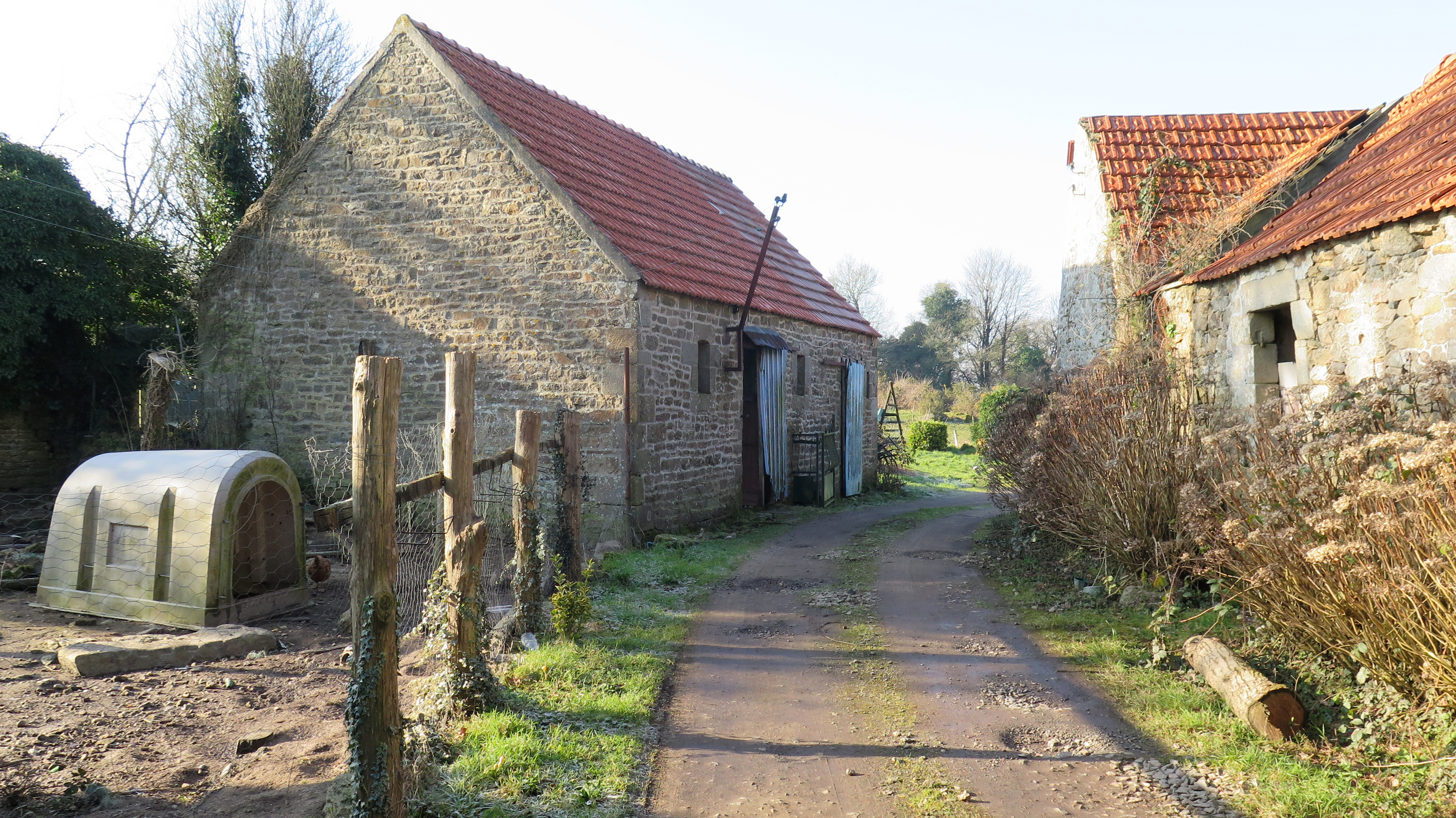 Plufur, Lestéo : entrée de la ferme bordée de dépendances (étables)Immatriculation