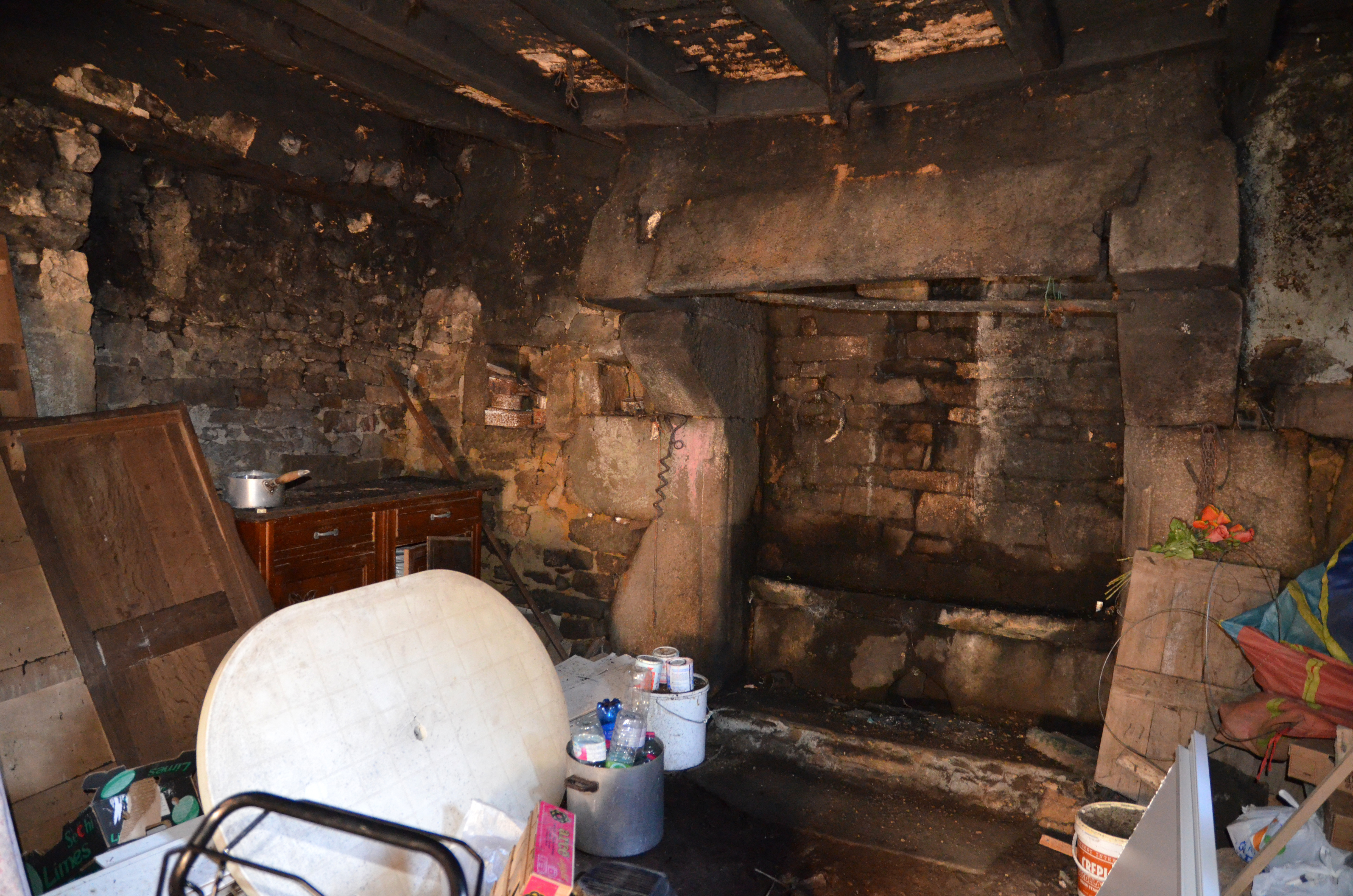 Plufur, Bourdoulous - Guern ar Hastel : alignement de deux logis, logis est datable du 18e siècle, vue intérieure, cheminée et Kuz GweleImmatriculation
