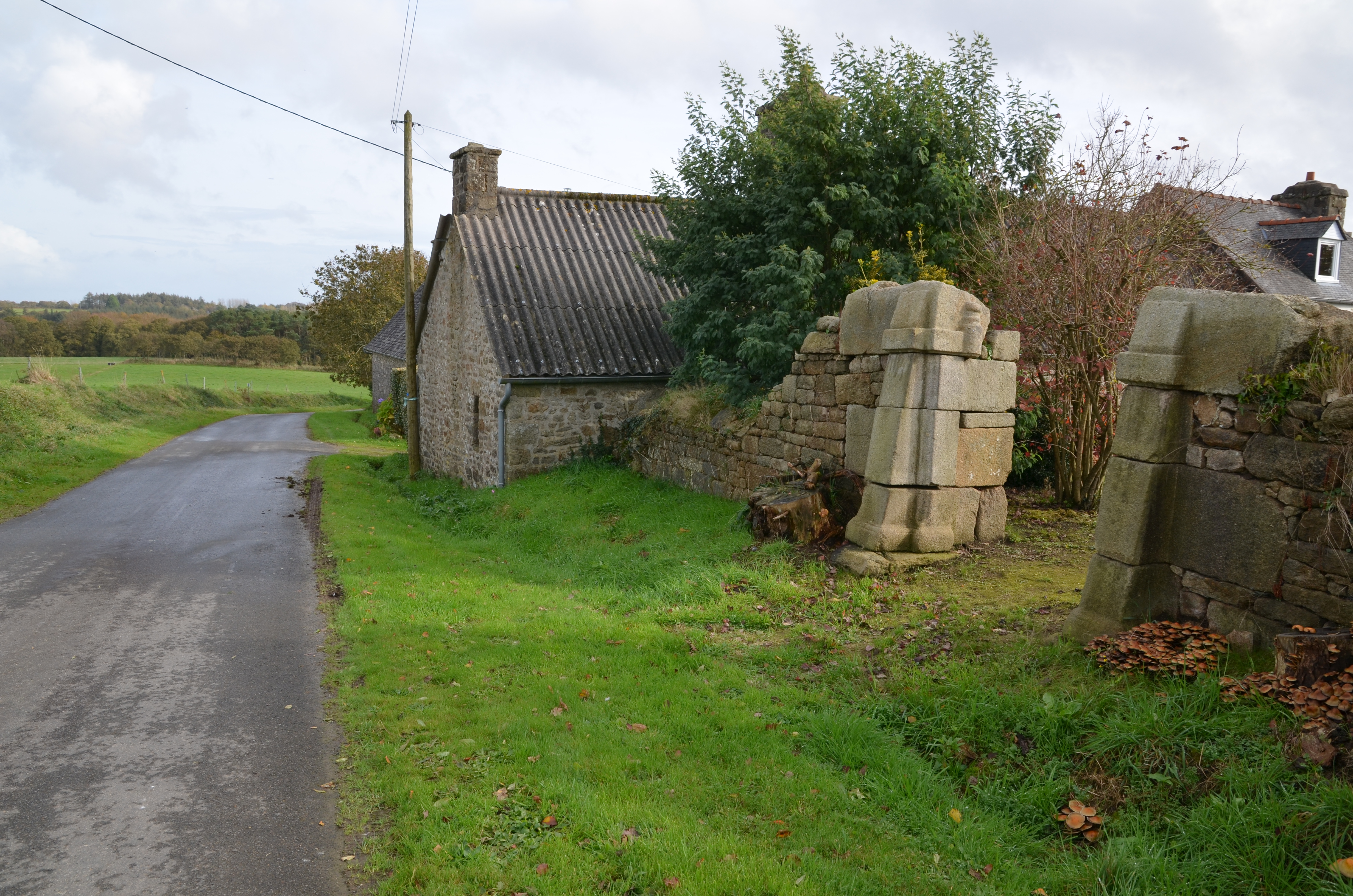 Plufur, Keramono Braz : ferme, piliers de clôture en pierre de taille de granite qui fermaient originellement la cour close par un mur d'enceinteImmatriculation