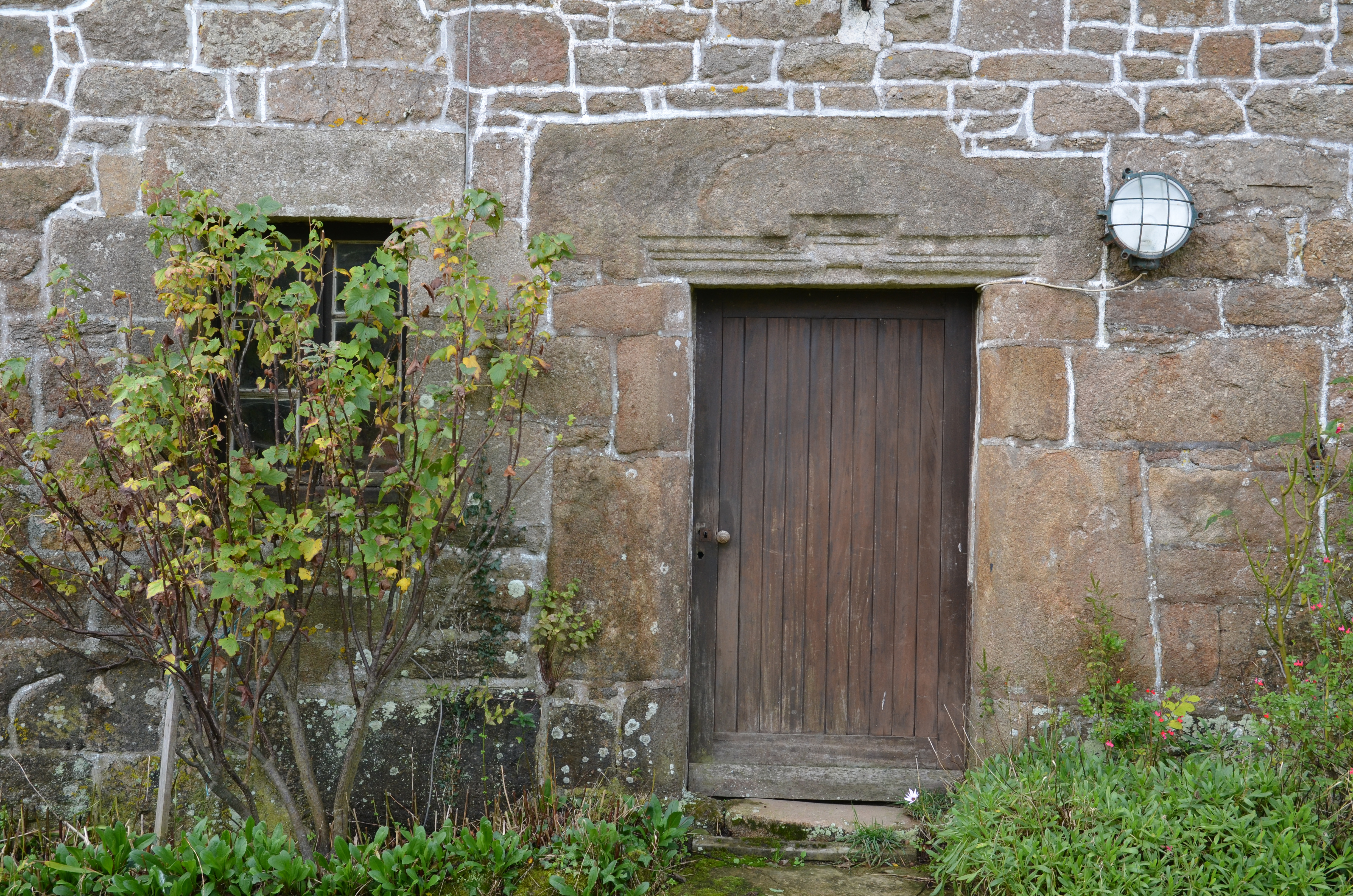 Plufur, Keramono Braz : alignement de trois logis de ferme, logis central, détail de la porte estImmatriculation