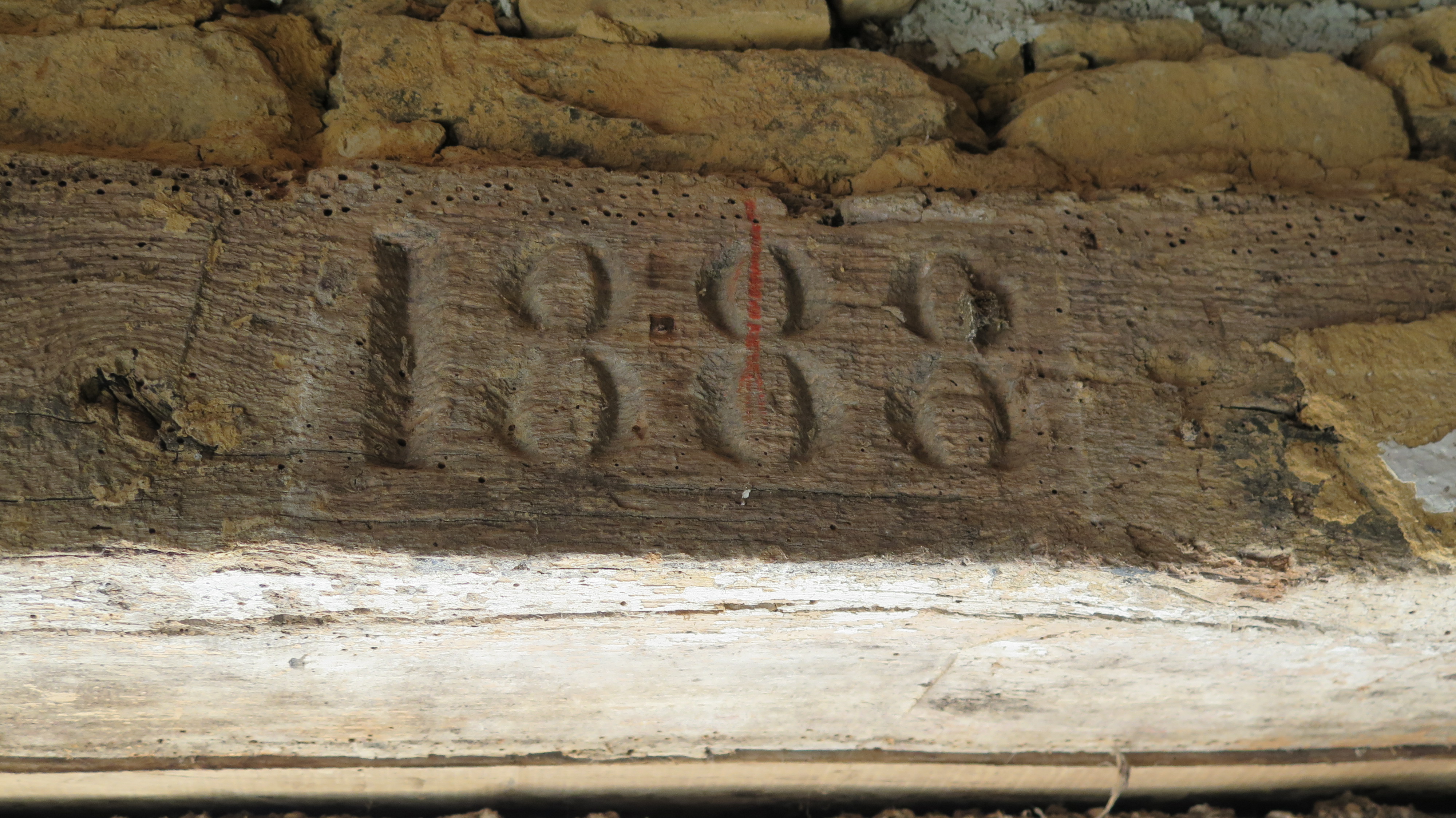 Plufur, Guerneven : dépendance, détail du millésime 1888 sur la poutre au-dessus de la porteImmatriculation