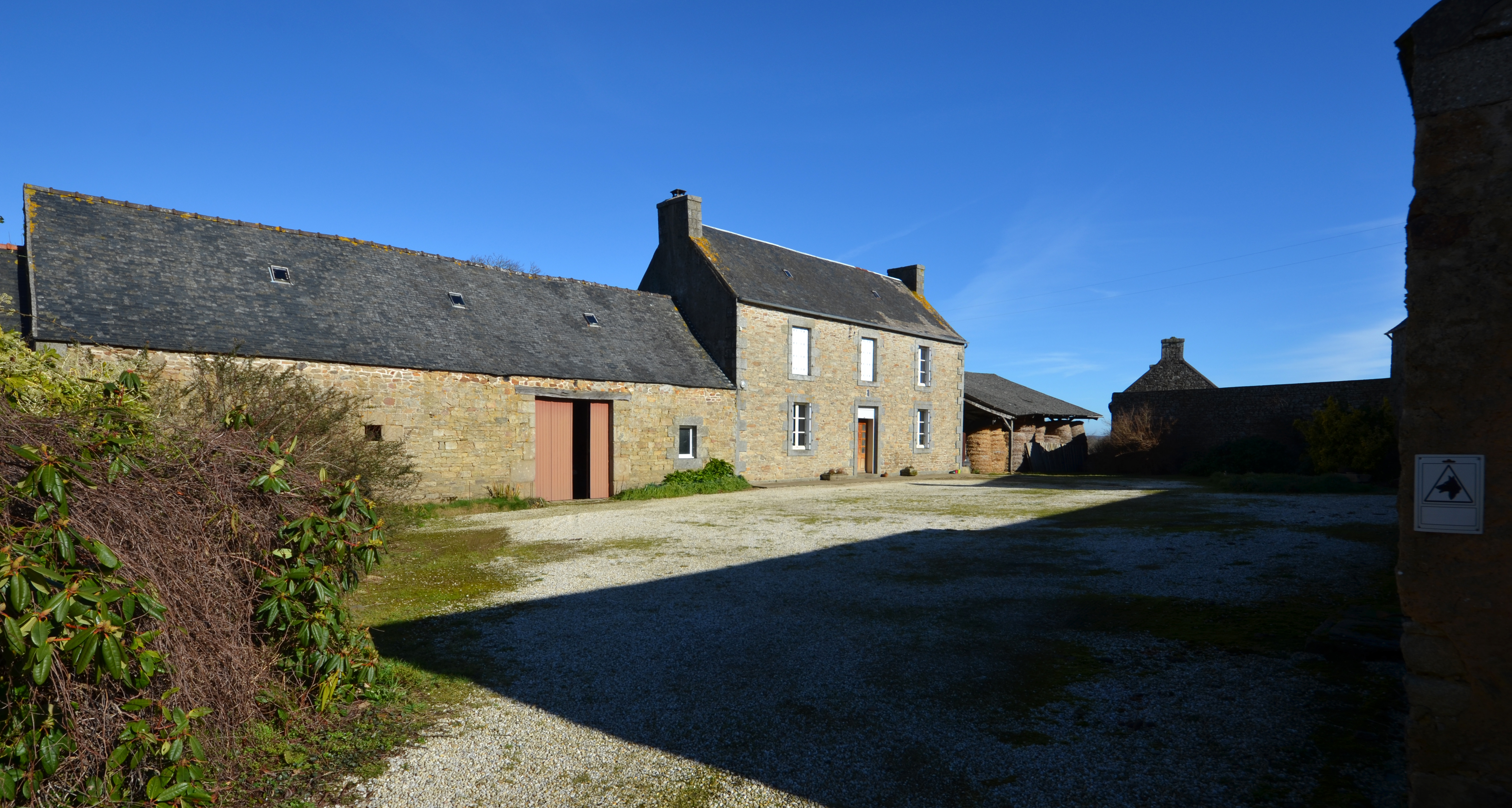 Plufur, place Jean Moulin (2) : ferme (alignement comprenant un logis, une grange-remise et une étable). Cet ensemble à vocation agricole est datable de la seconde moitié du 19e siècleImmatriculation