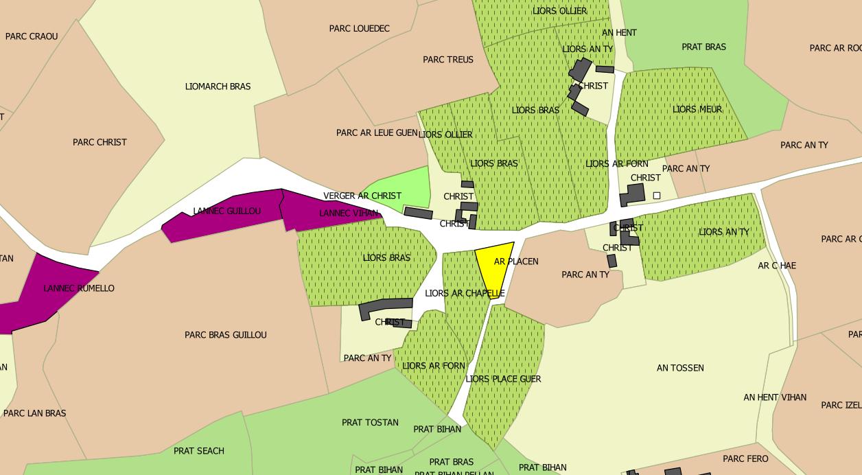 Plufur : analyse microtoponymique à partir des données du cadastre moderne (cartographie : Guillaume Lécuillier, avril 2015)Immatriculation