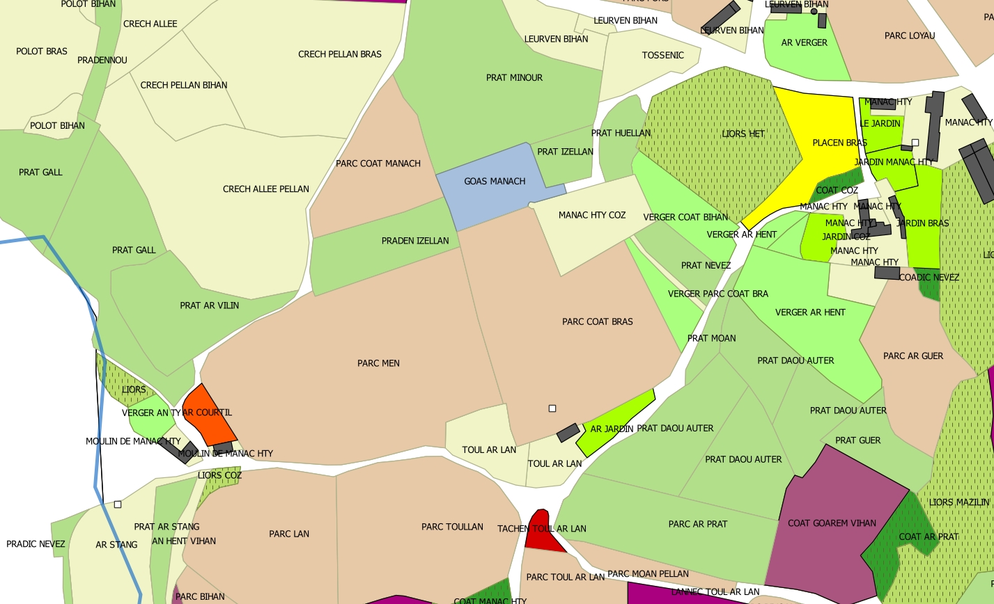 Plufur : analyse microtoponymique à partir des données du cadastre moderne (cartographie : Guillaume Lécuillier, avril 2015)Immatriculation