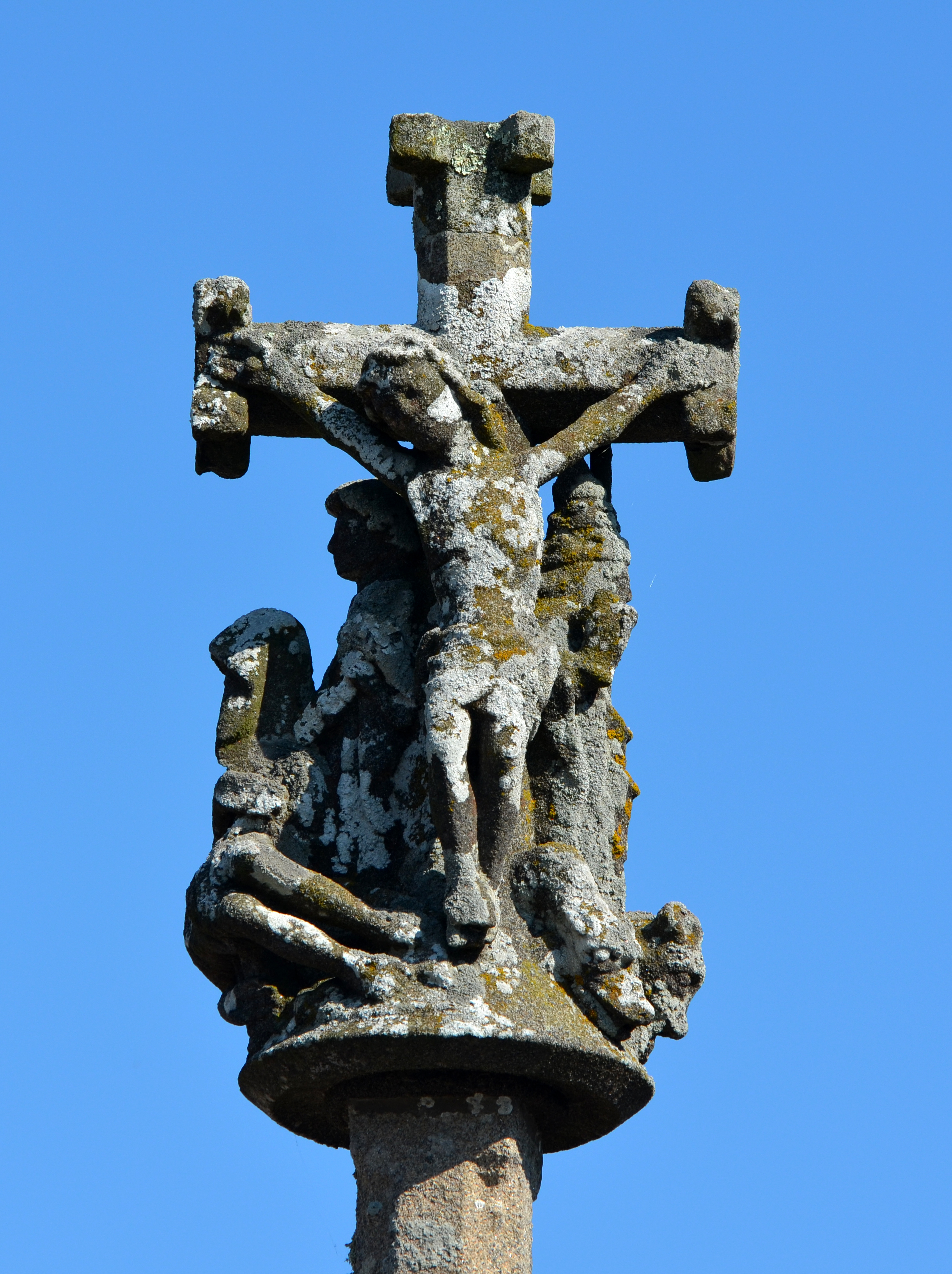 Plouzélambre, le bourg : calvaire, face orientée vers le sud, Christ en croixImmatriculation