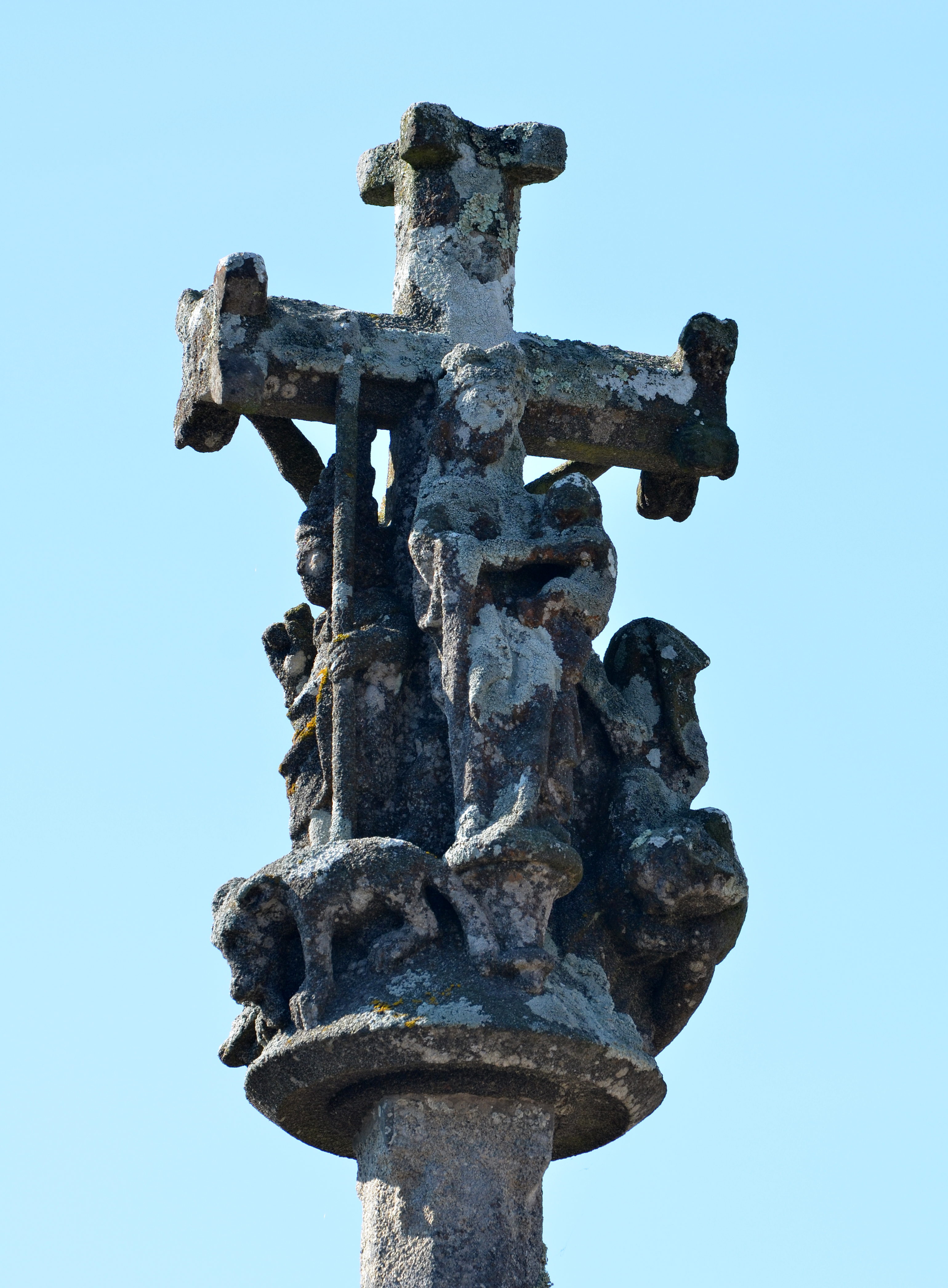 Plouzélambre, le bourg : calvaire, face orientée vers le nord, Vierge à l'enfant, thème renvoyant à la Nativité du Christ et à la maternité de la Vierge MarieImmatriculation