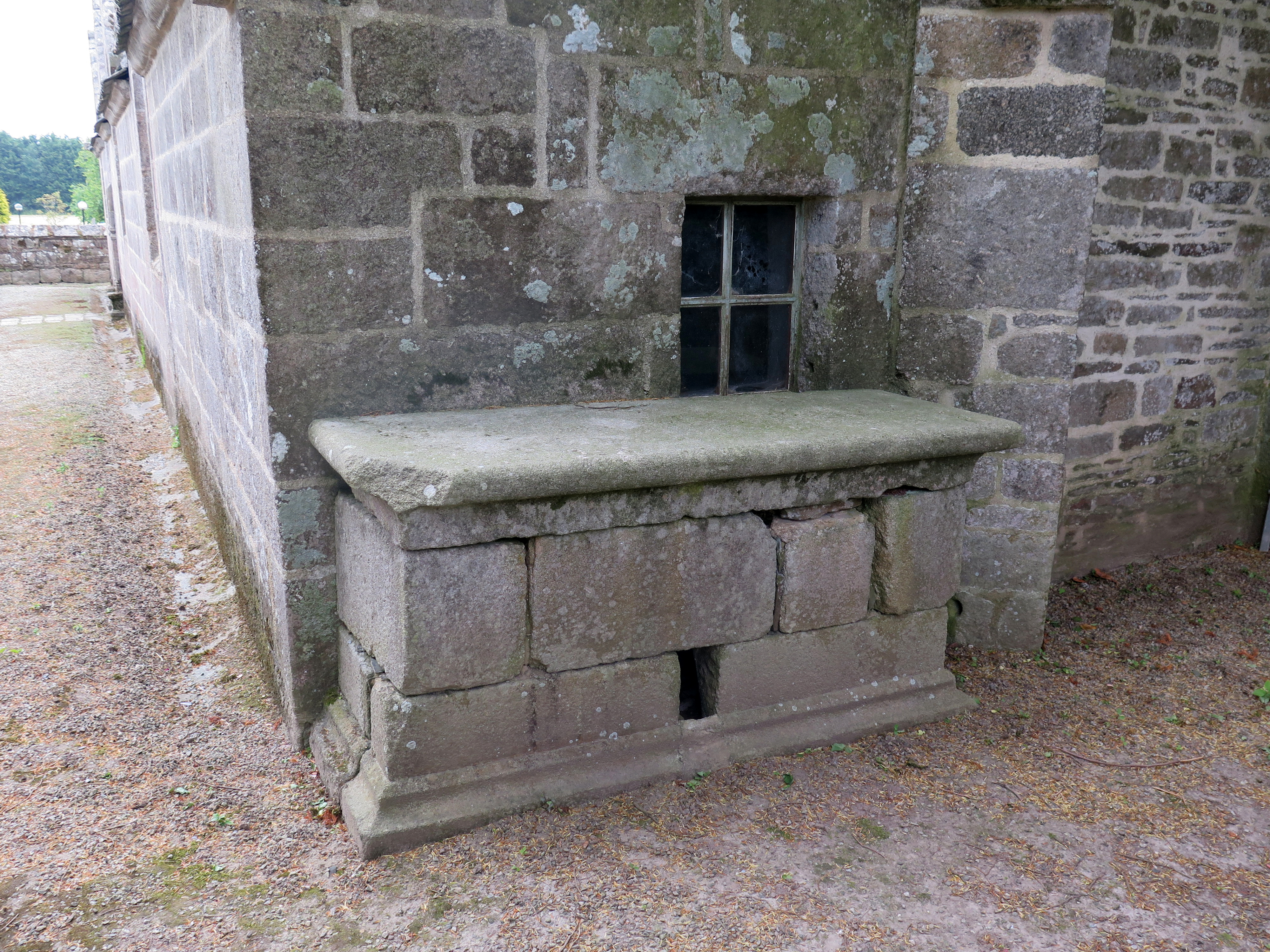 Plouzélambre, le bourg, enclos paroissial : église Saint-Sylvestre, ancien autel médiéval (transféré un "moment" dans l'ossuaire)Immatriculation