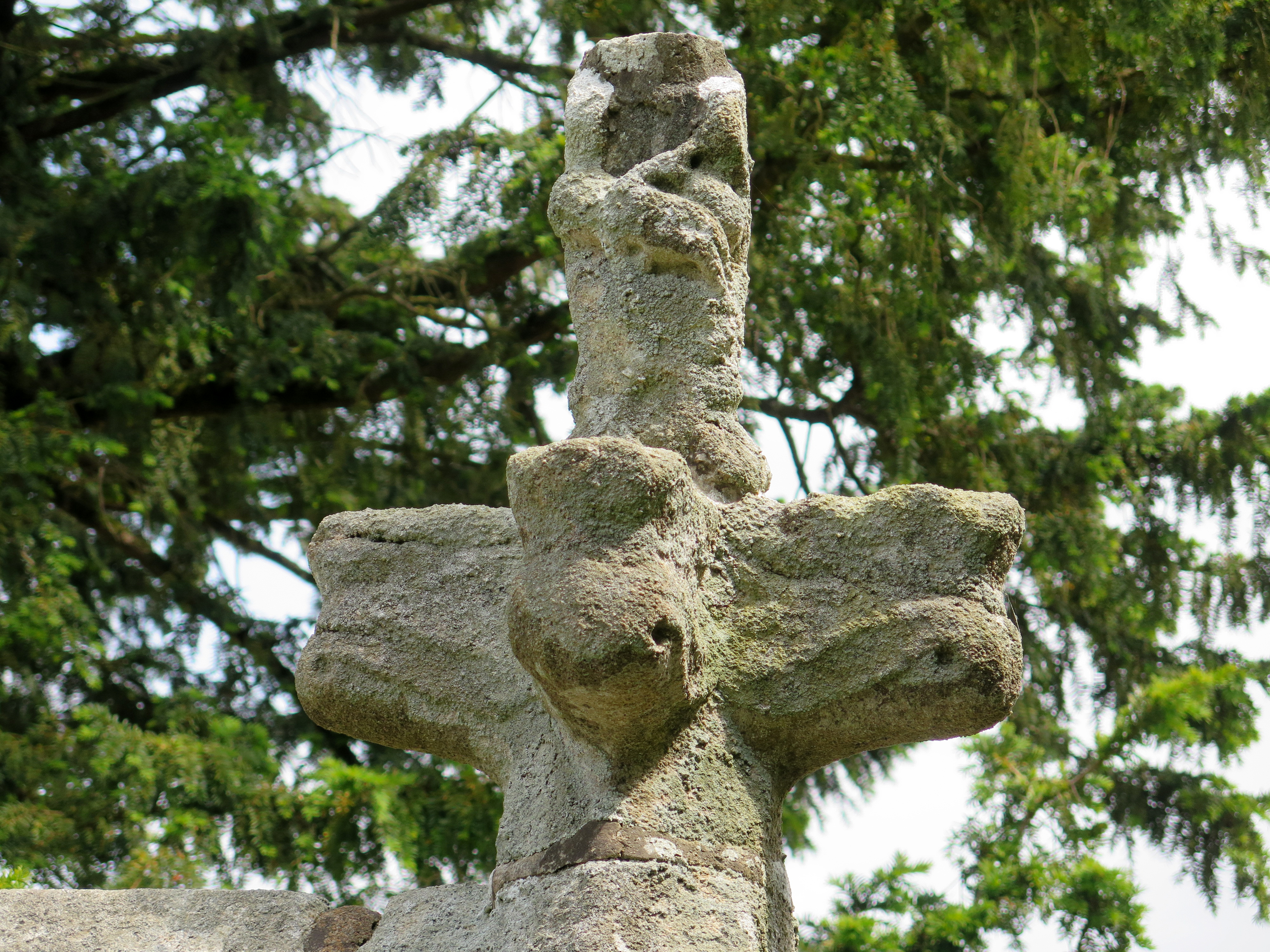 Plouzélambre : fontaine de dévotion dédiée à saint Sylvestre, fleuron sculpté. En partie sommitale, on peut remarquer une Pietà, ou Vierge de PitiéImmatriculation