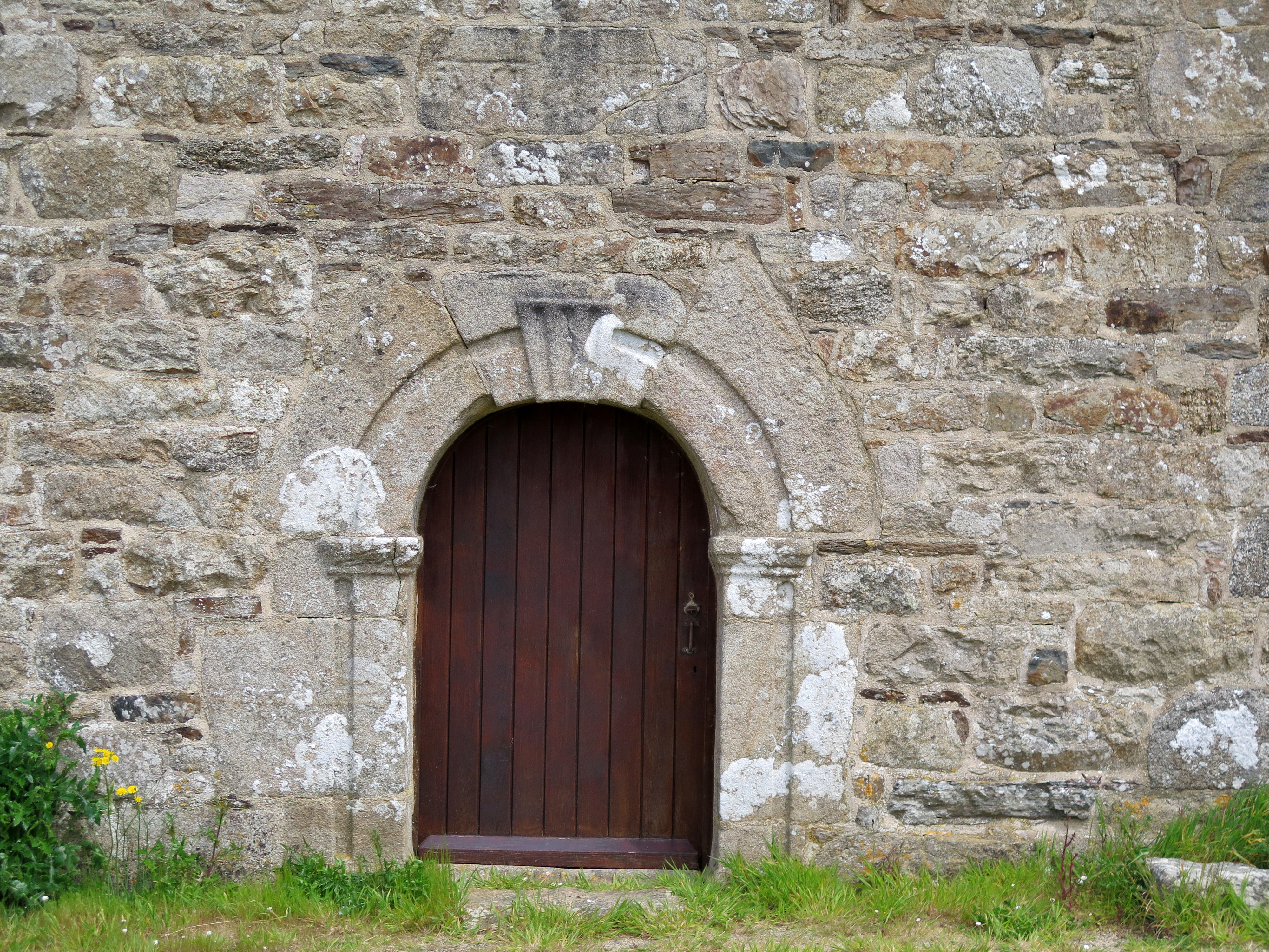 Plouzélambre, Run ar Bélard : chapelle Saint-Mélar, porte ouest en arc plein cintre. Elle est surmontée du millésime "1623"Immatriculation