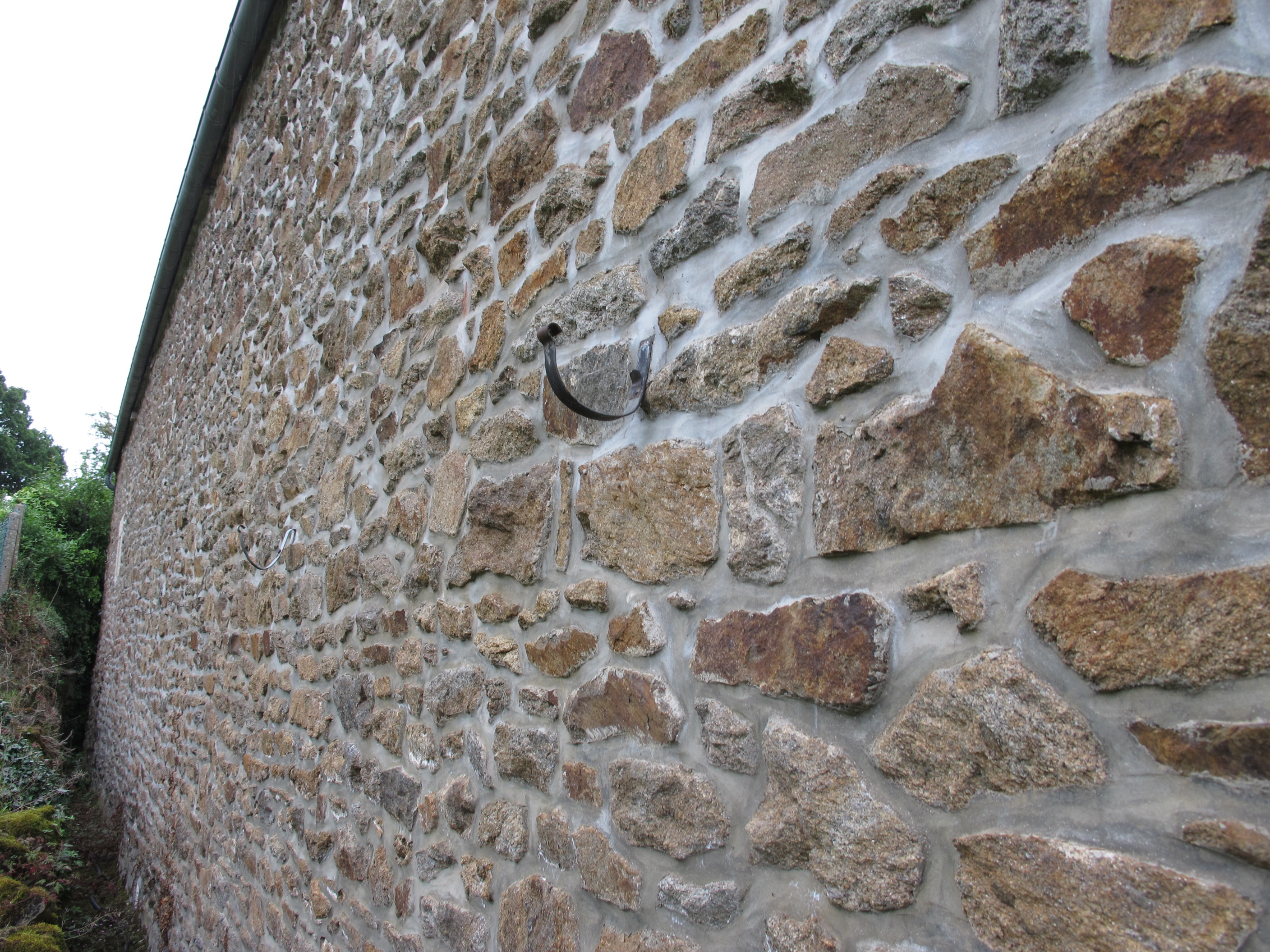 Vue générale d'une série de crochet en façade arrière, support d'une ancienne gouttière ?Immatriculation
