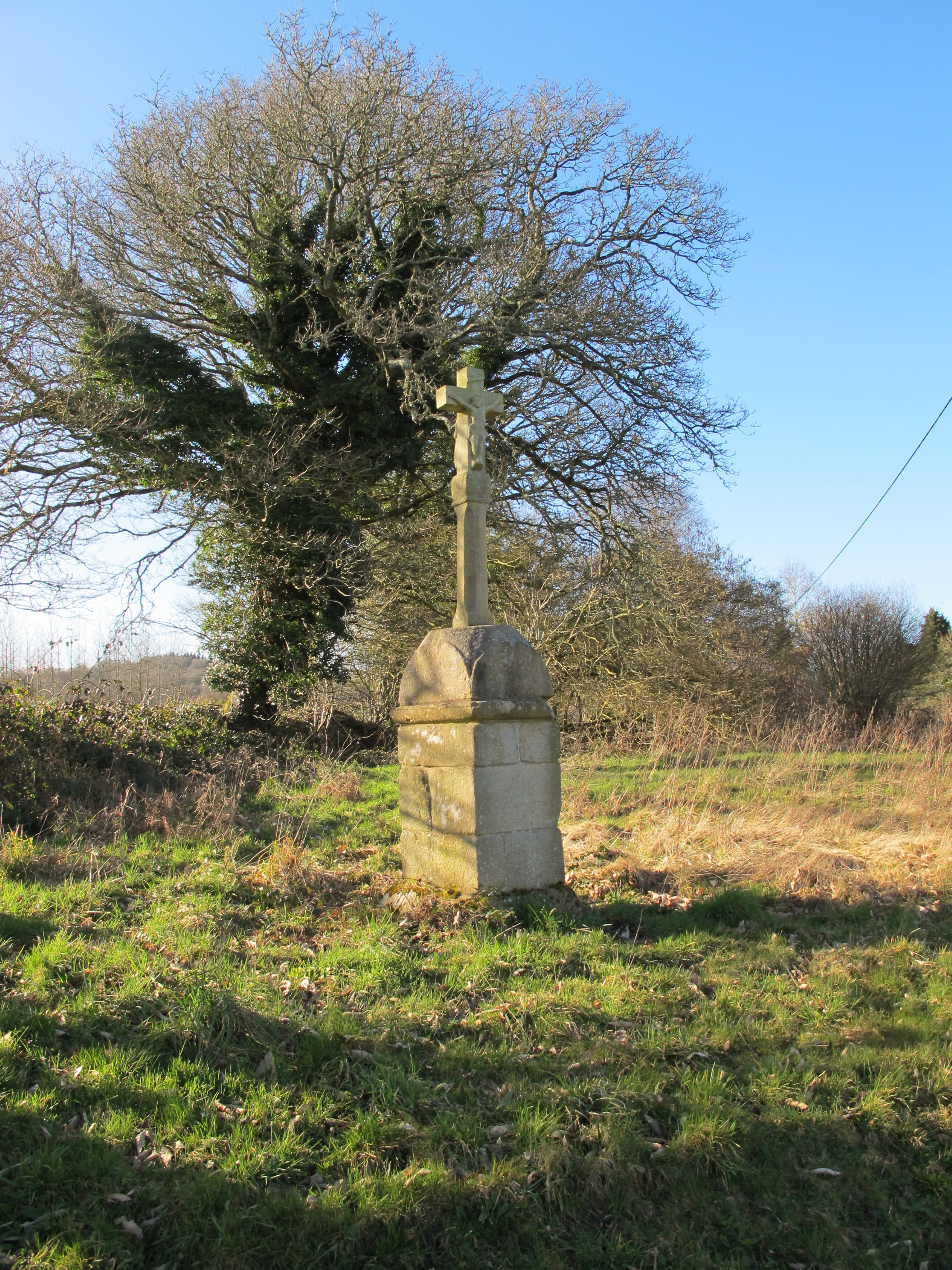 Bodéalen (au sud de), croix de chemin, vue est. Soubassement 18e siècle ?, fût et croix modernes,Immatriculation