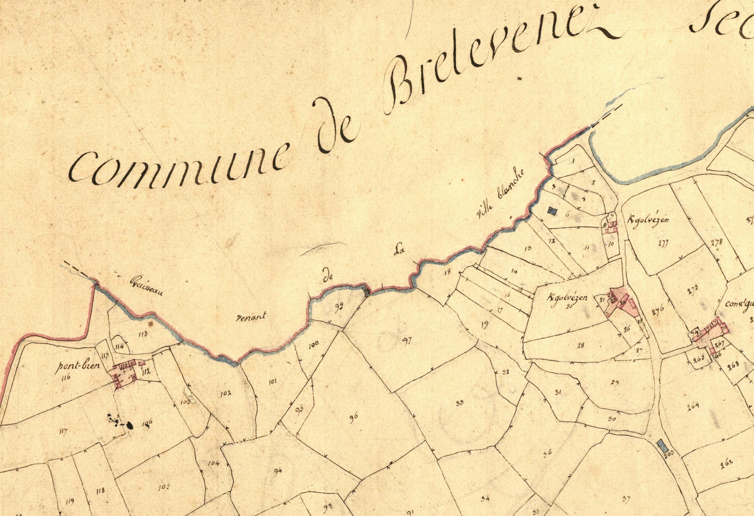 Extrait du plan du cadastre napoléonien de la commune de Rospez (parcelle n°D98)Immatriculation