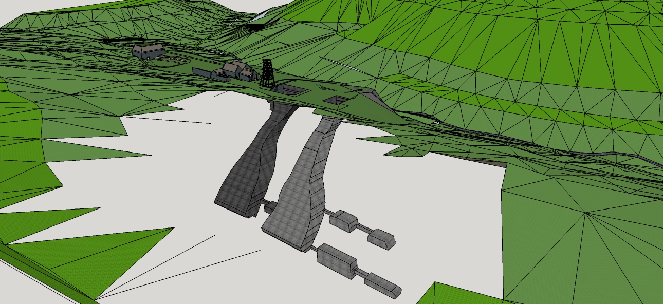 Modélisation - Vue du site et des puits en coupeImmatriculation