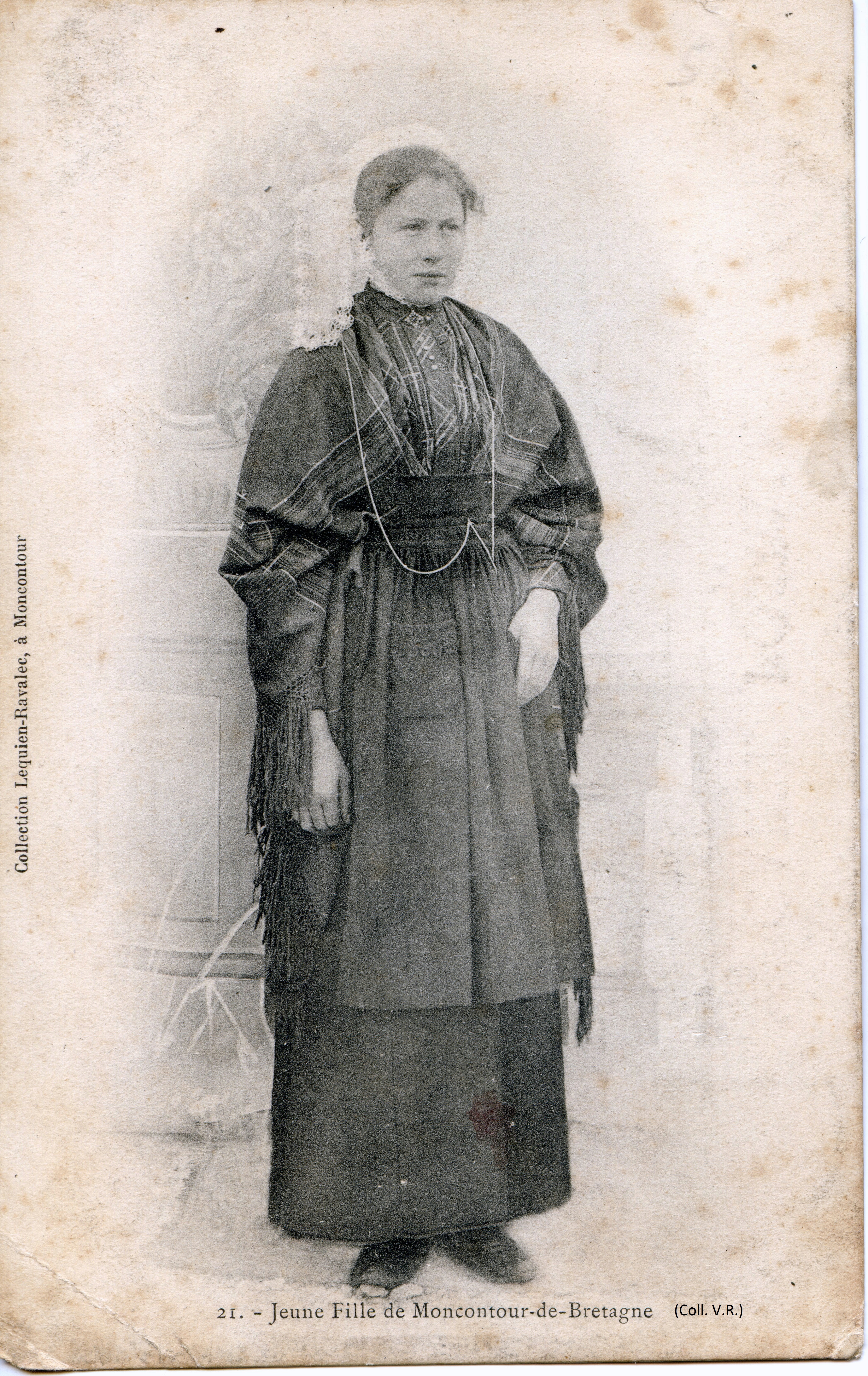 Carte postale extraite de la collection de Vincent Roussel. Costumes et coiffes de ce pays. Les mentonnières sont portées soit sur le côté droit ou sur le côté gauche du visage.Immatriculation