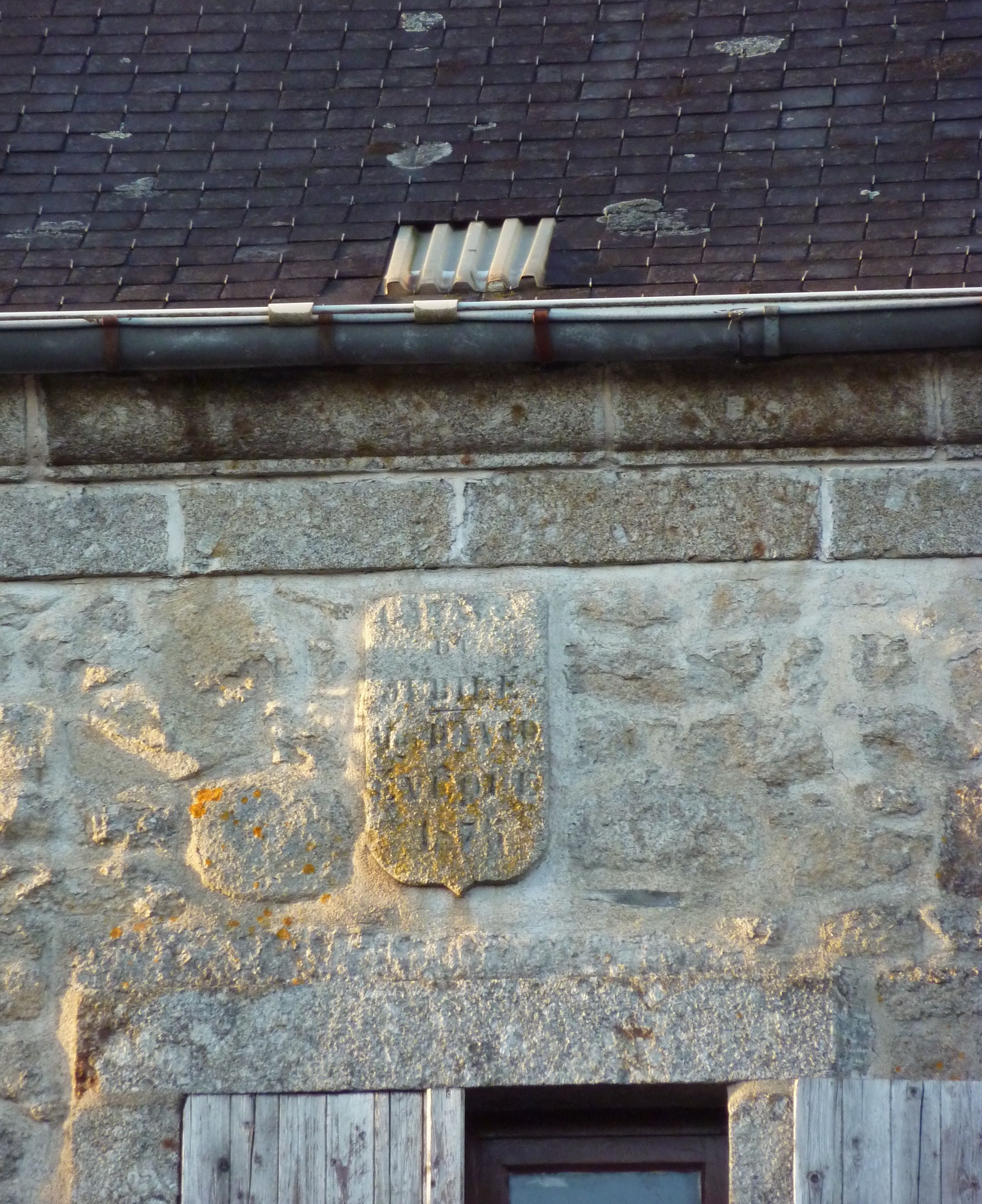 Bourg, ancien presbytère daté 1875, détail date et inscriptionImmatriculation
