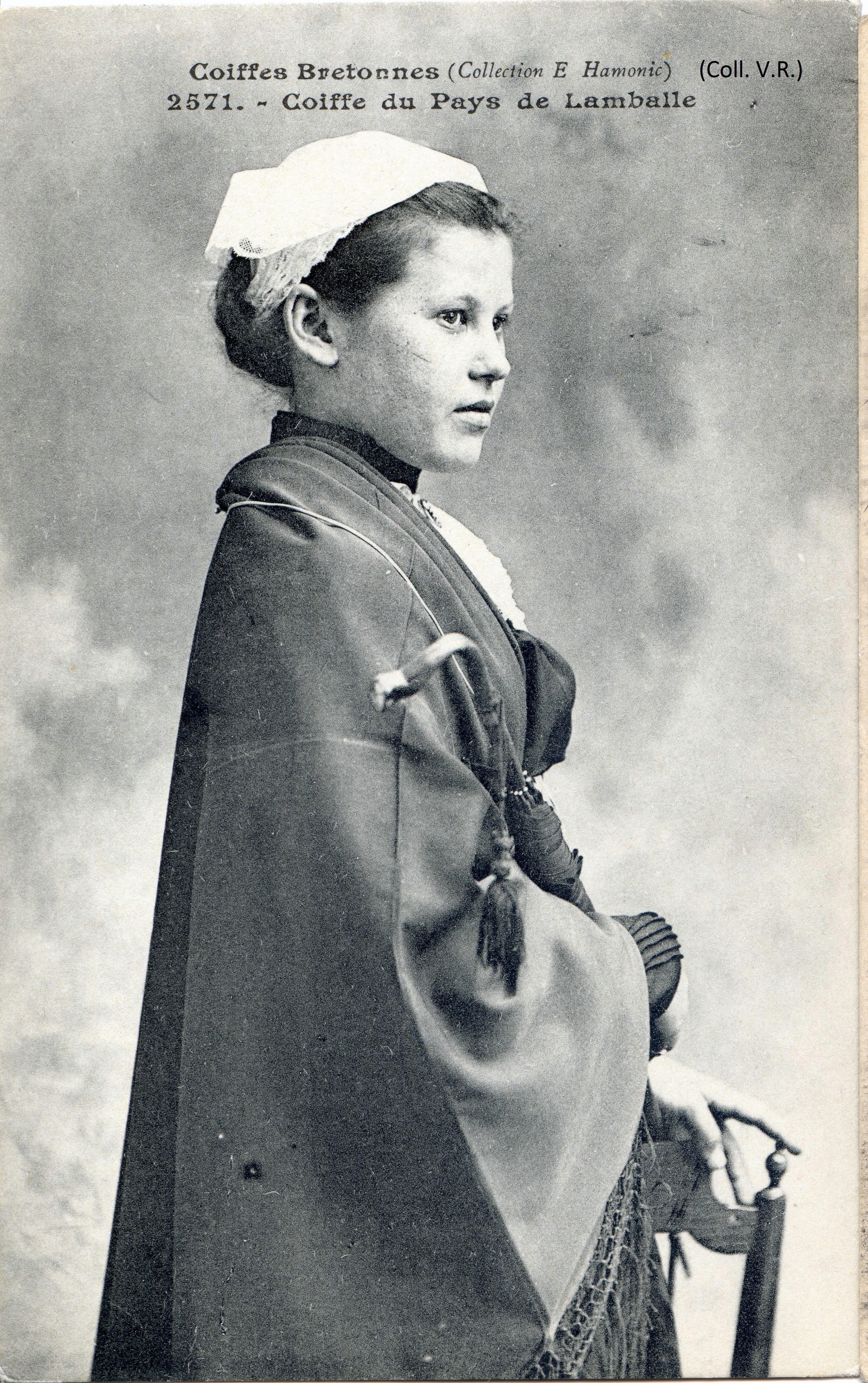 La dernière carte montre une jeune fille vraisemblablement de Lamballe puisque sa coiffe n’a pas de mentonnières.Immatriculation