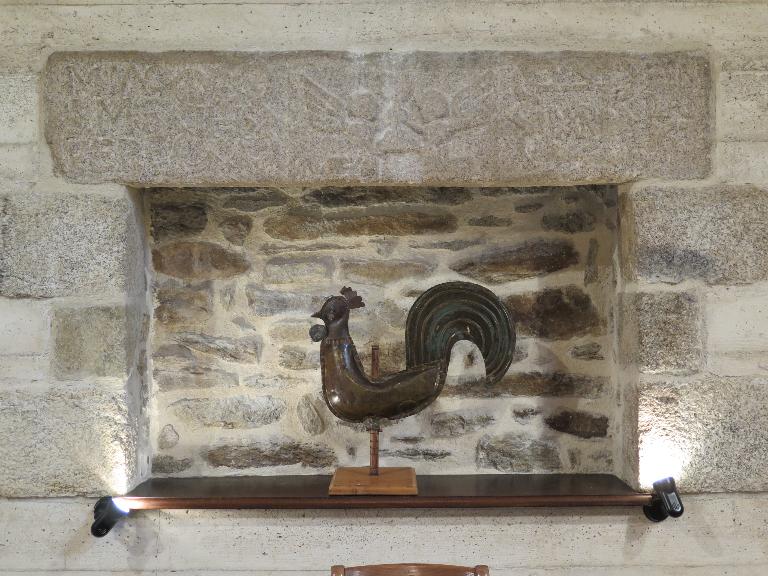 Salle d'Honneur : pierre remployée et ancien coq de l'égliseImmatriculation