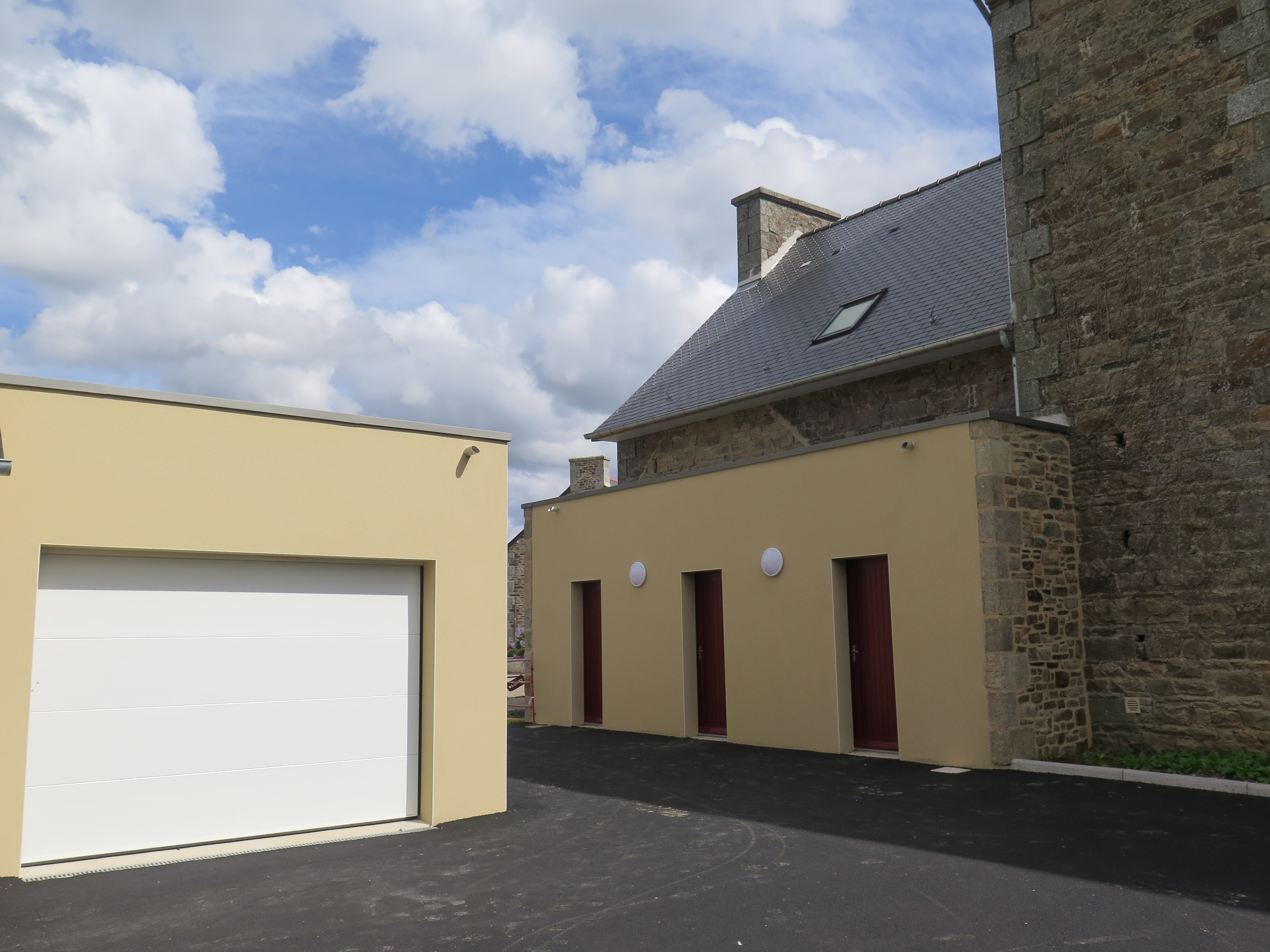 Rospez, le bourg : presbytère devenu logements sociaux, aile en retour reconstruite en 2015Immatriculation