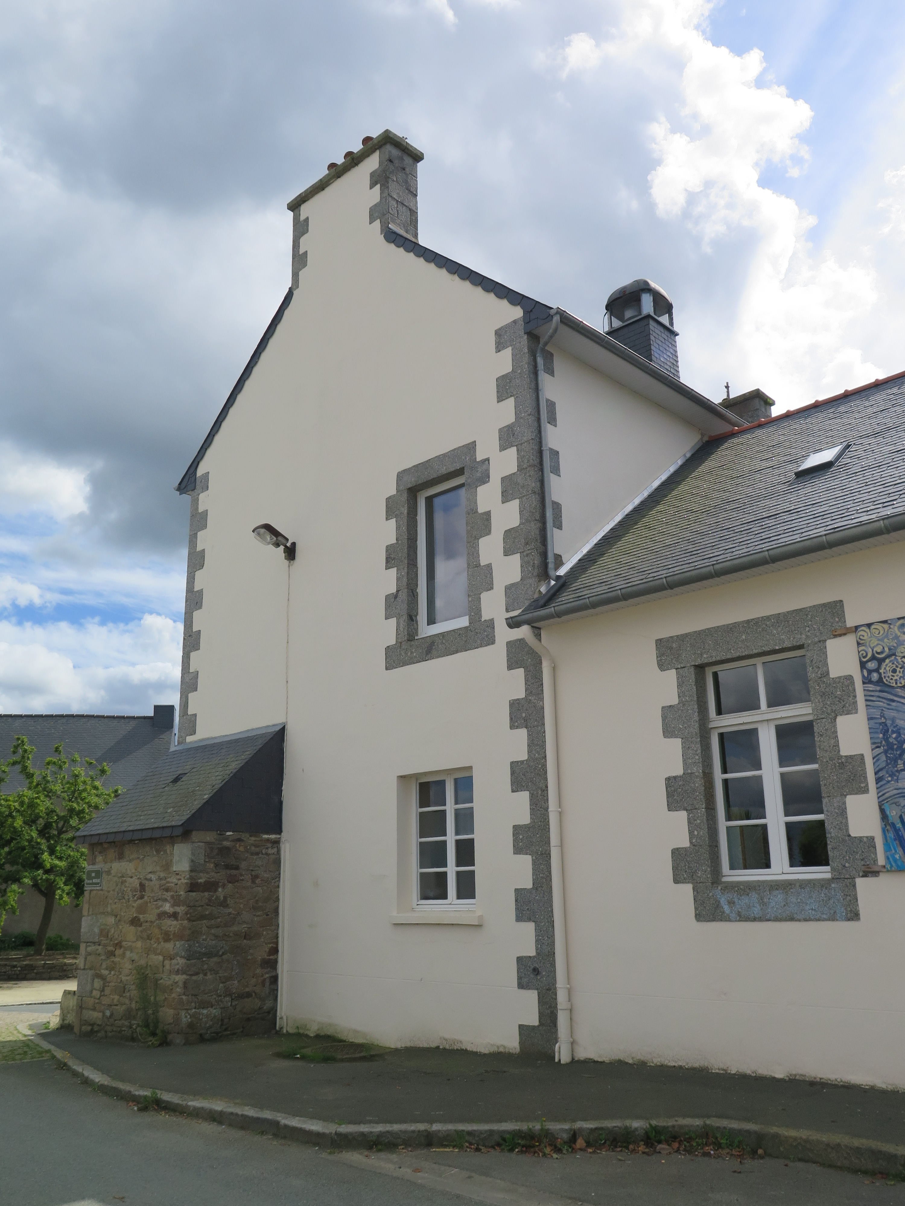 Rospez : mairie-école aujourd'hui école, pignon est (une fenêtre à été percée au rez-de-chaussée)Immatriculation