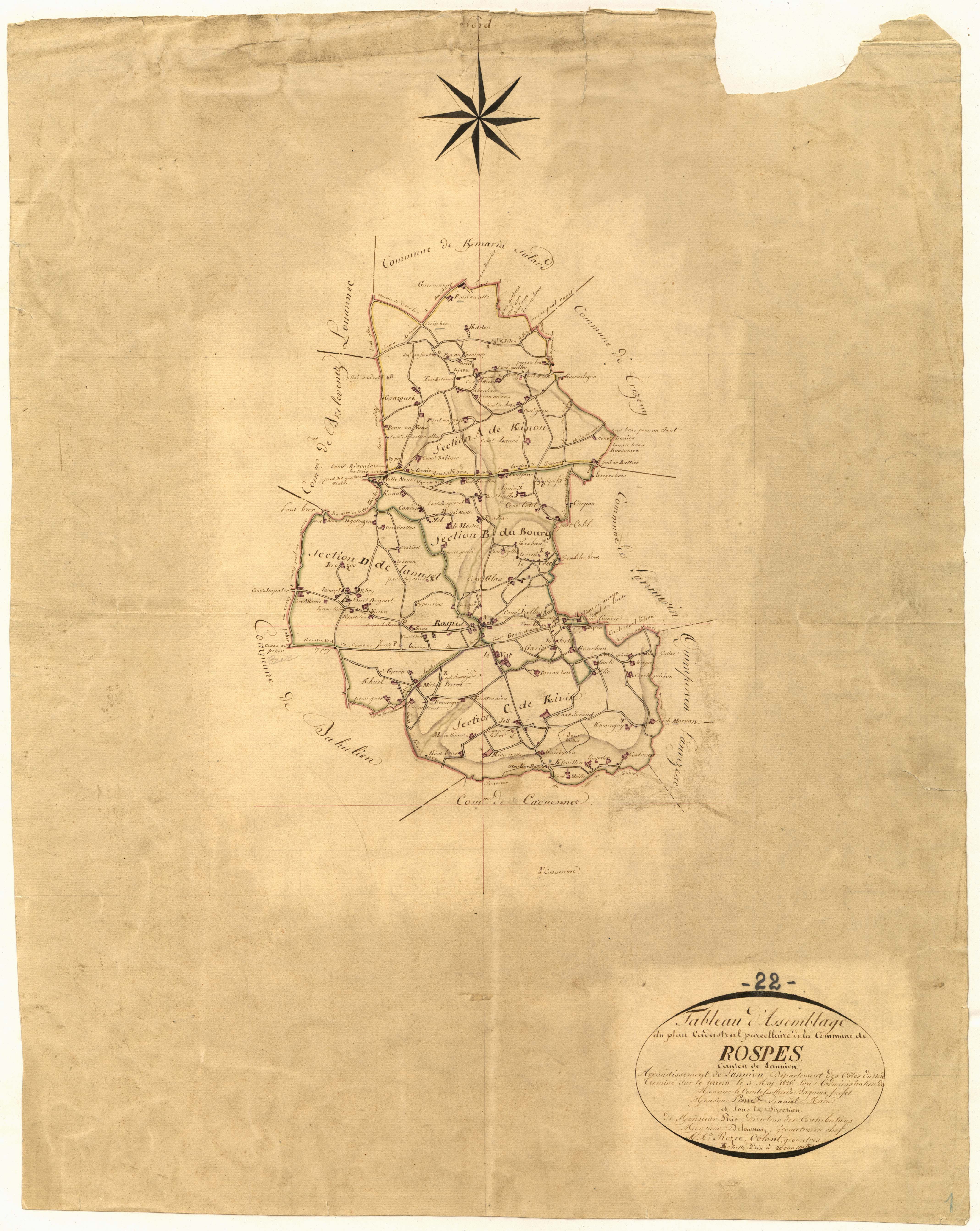 Rospez : plan d'assemblage du cadastre de 1826. À cette époque, l'habitat était particulièrement disperséImmatriculation