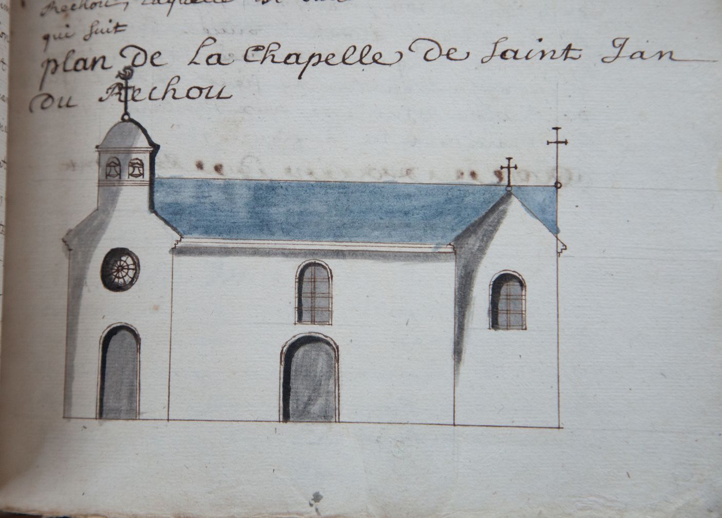 Chapelle Saint-Jan du Rechou. Dessin à la plume aquarellé, 1731 (A. D. de La Vienne, 3H1 450)Immatriculation