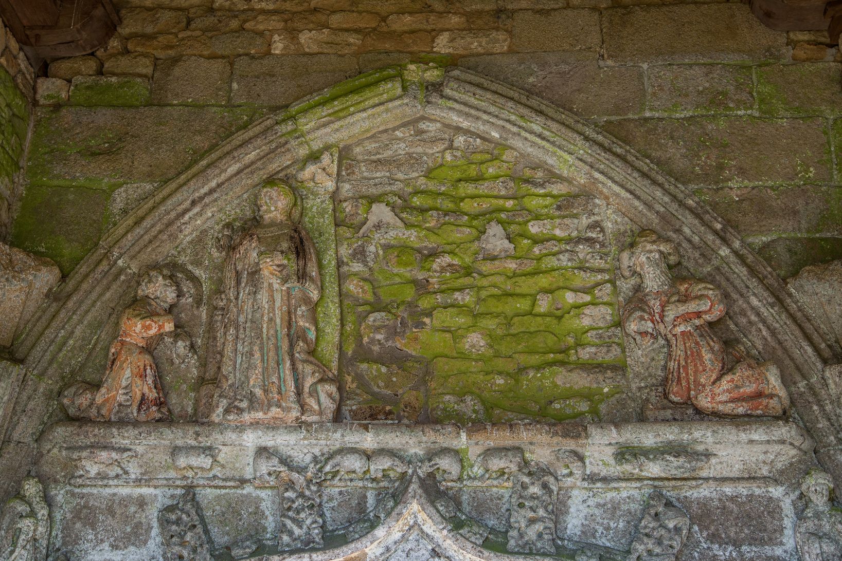 Tympan de l'Annonciation, portail méridional, Chapelle Saint-Jean de Keramanac'h (Plounévez-Moëdec)Immatriculation
