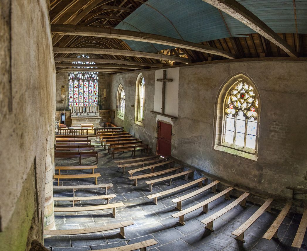 Vue intérieure de la nef, Chapelle Saint-Jean de Keramanac'h (Plounévez-Moëdec)Immatriculation
