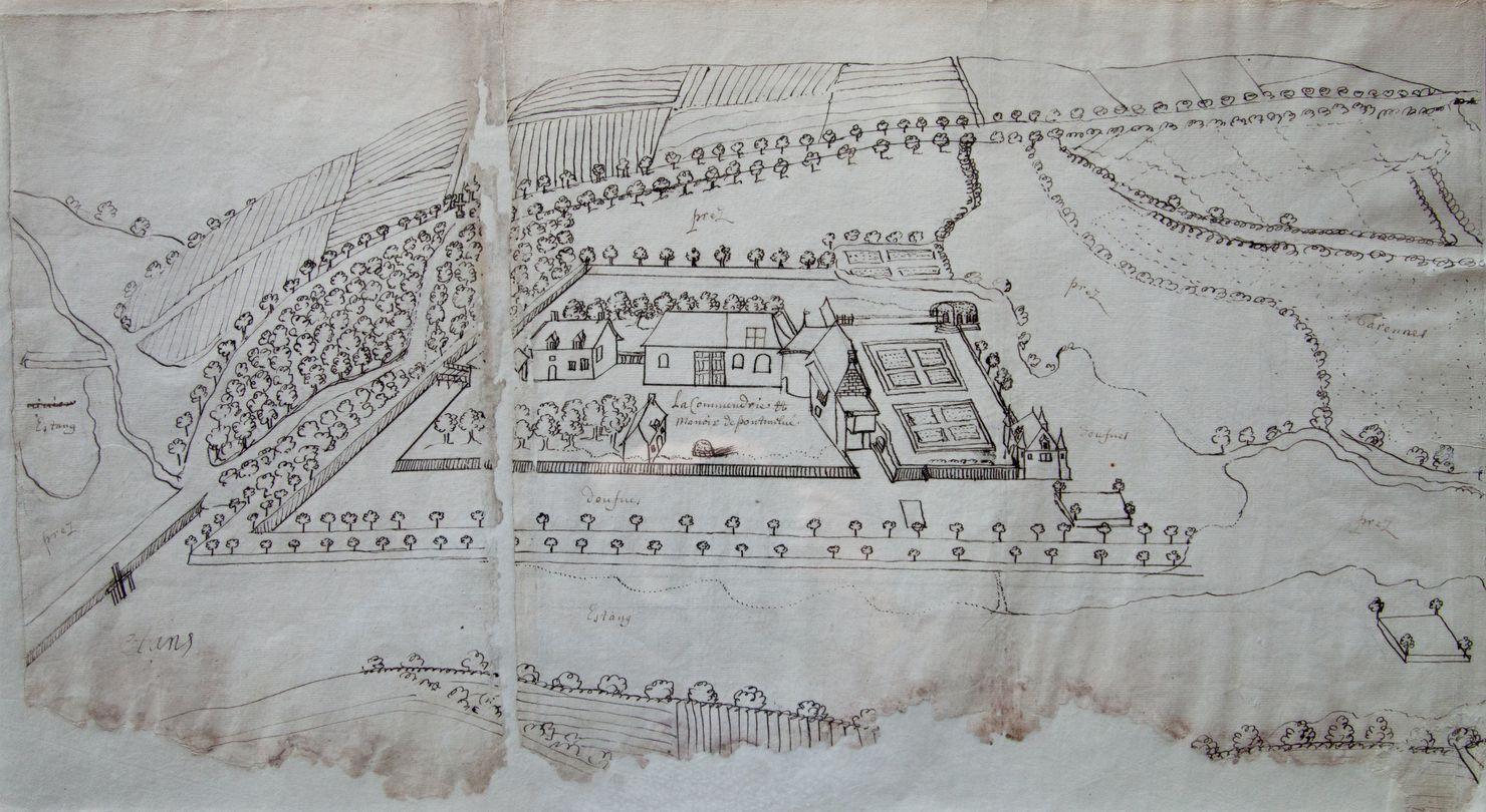 Perspective cavalière du manoir commandal de Pont-Melvez, AD22 H509Immatriculation