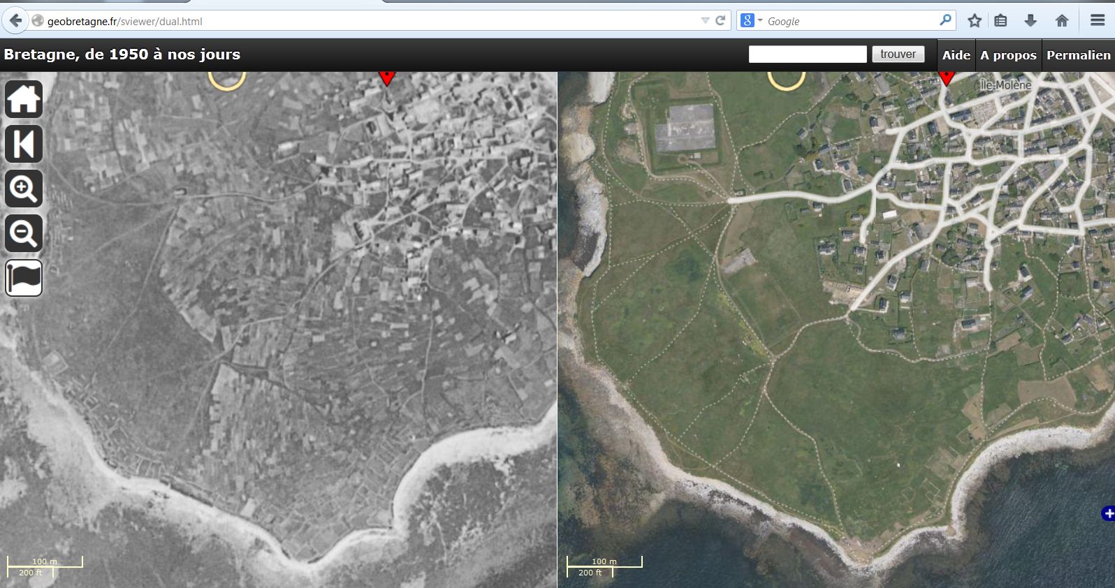 GeoBretagne : vues aériennes vers 1950 et 2000Immatriculation