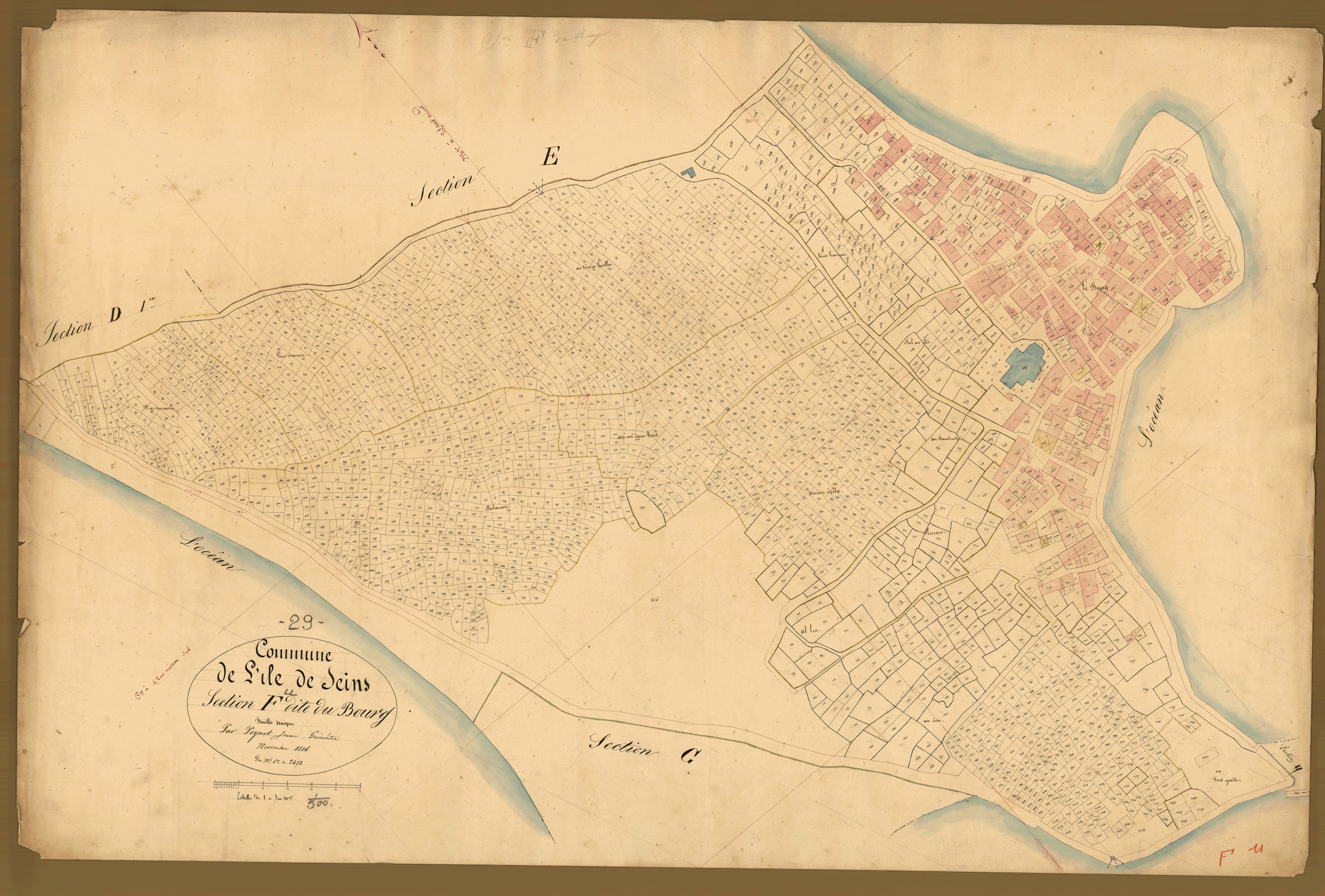 Extrait du cadastre de 1836, section F, dite du bourgImmatriculation
