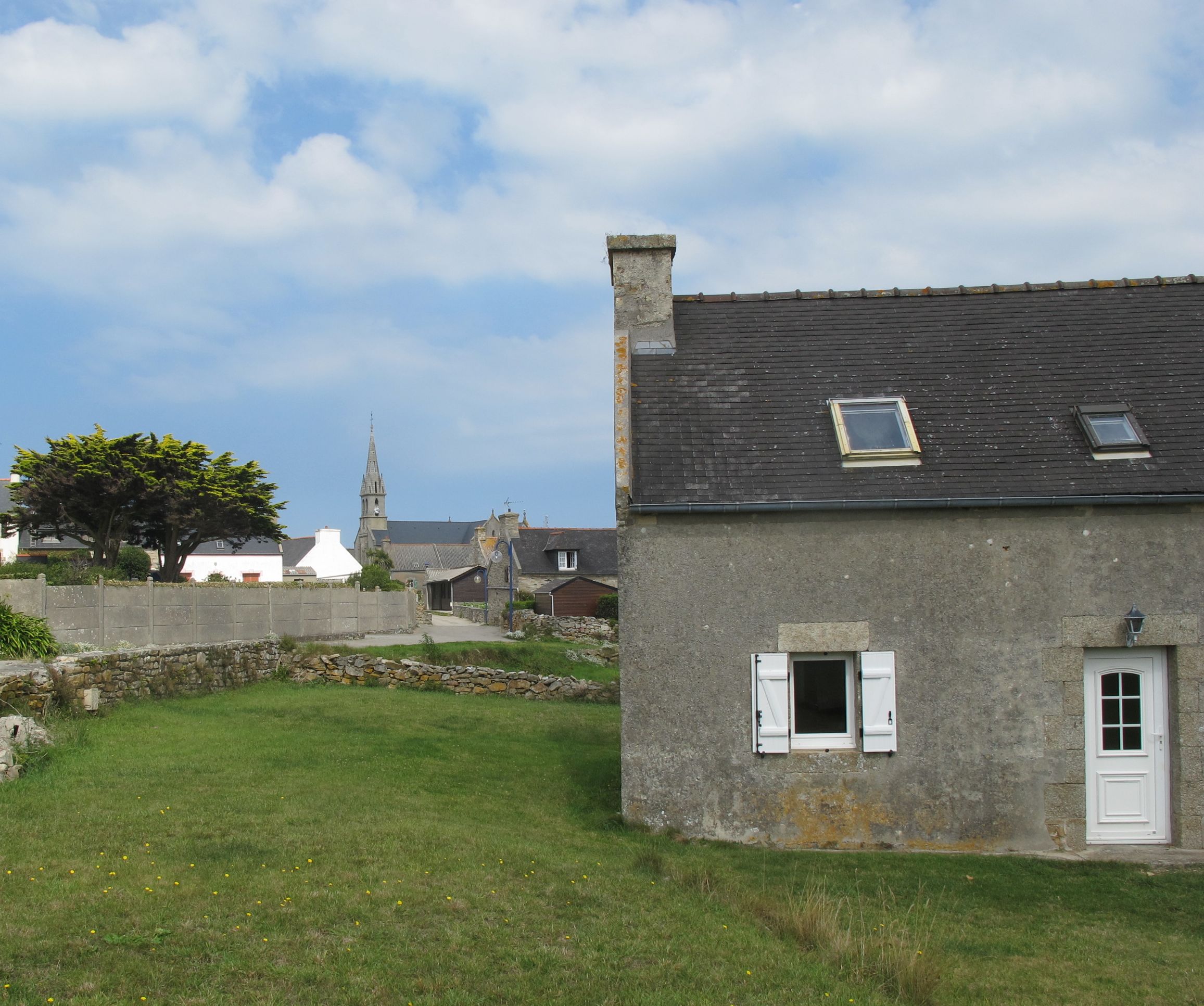 Molène, vue générale, maison, église, rueImmatriculation