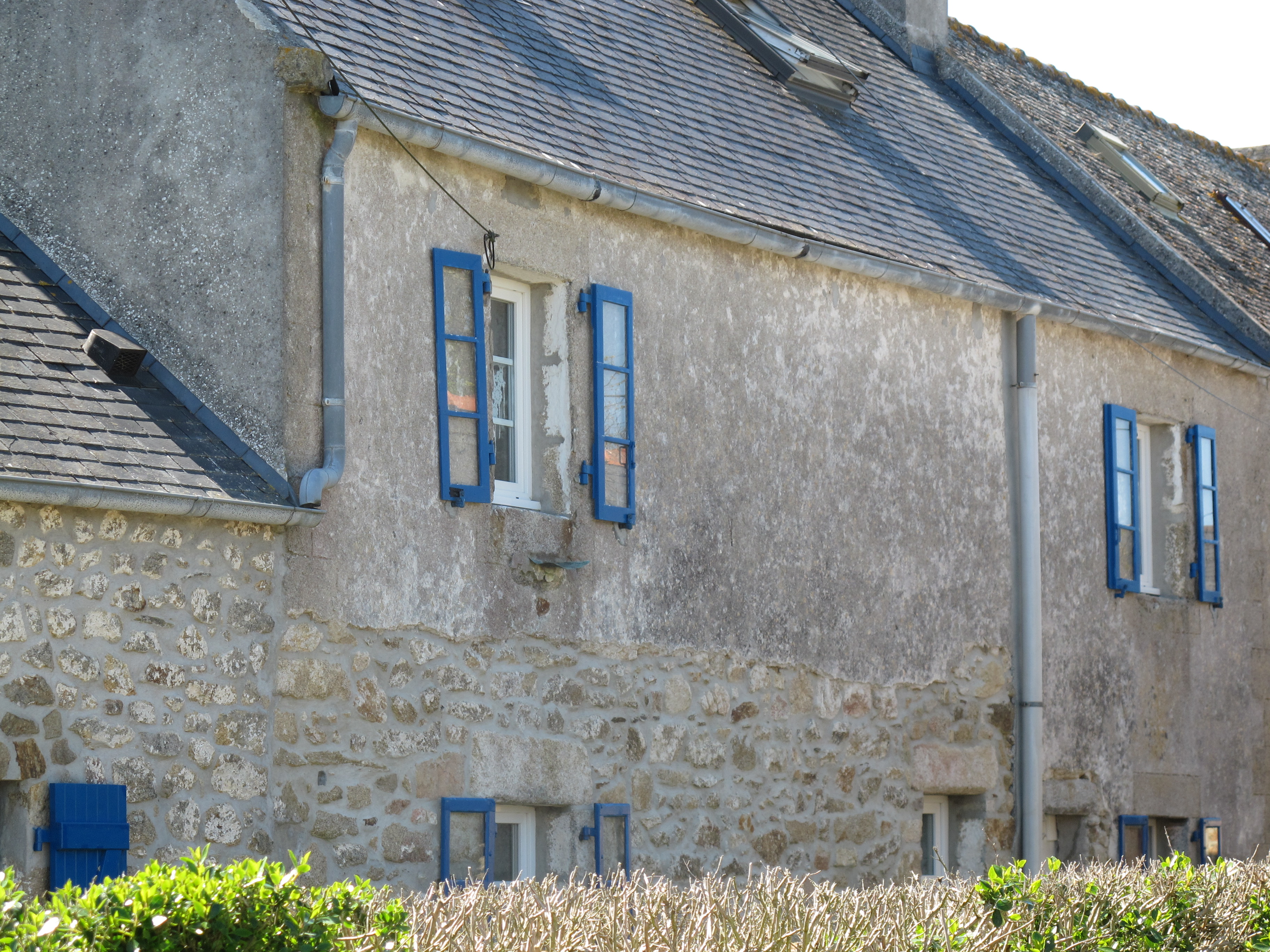 Kerlaouen, alignement, façade est, fenêtres et volets vitrés (vue rapprochée)Immatriculation