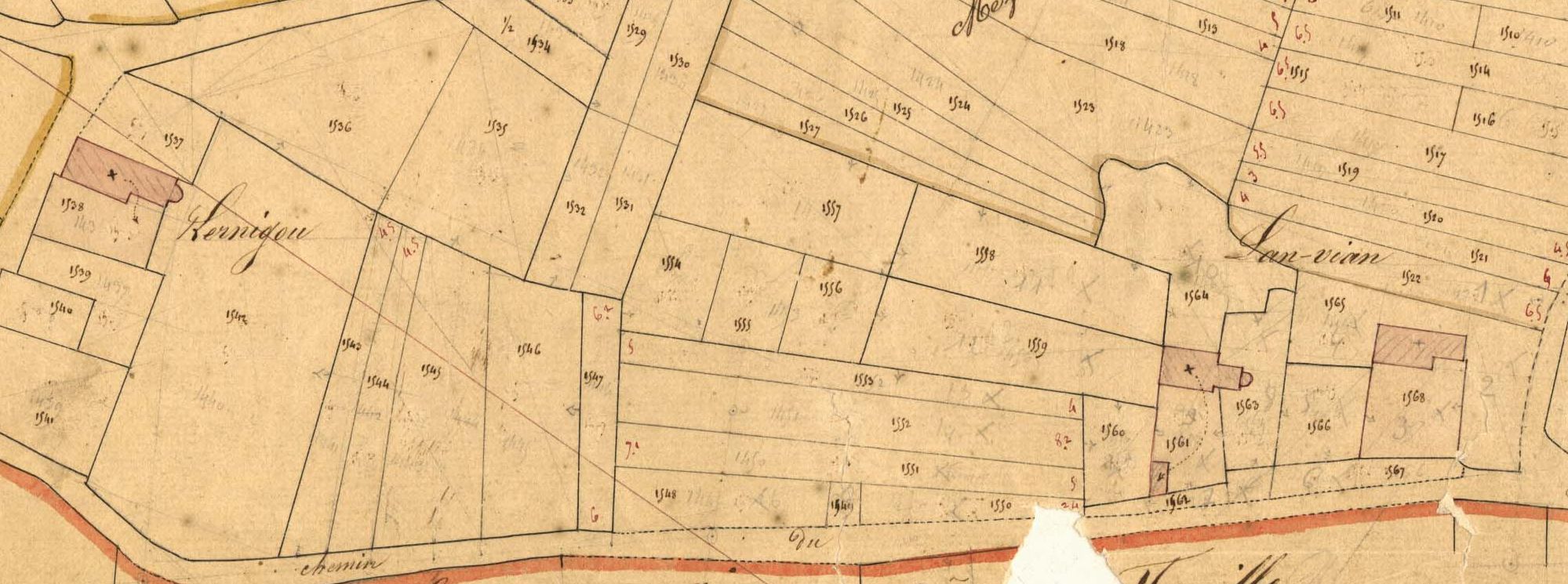 Cadastre de 1842, section E, feuille 2 (extrait)Immatriculation