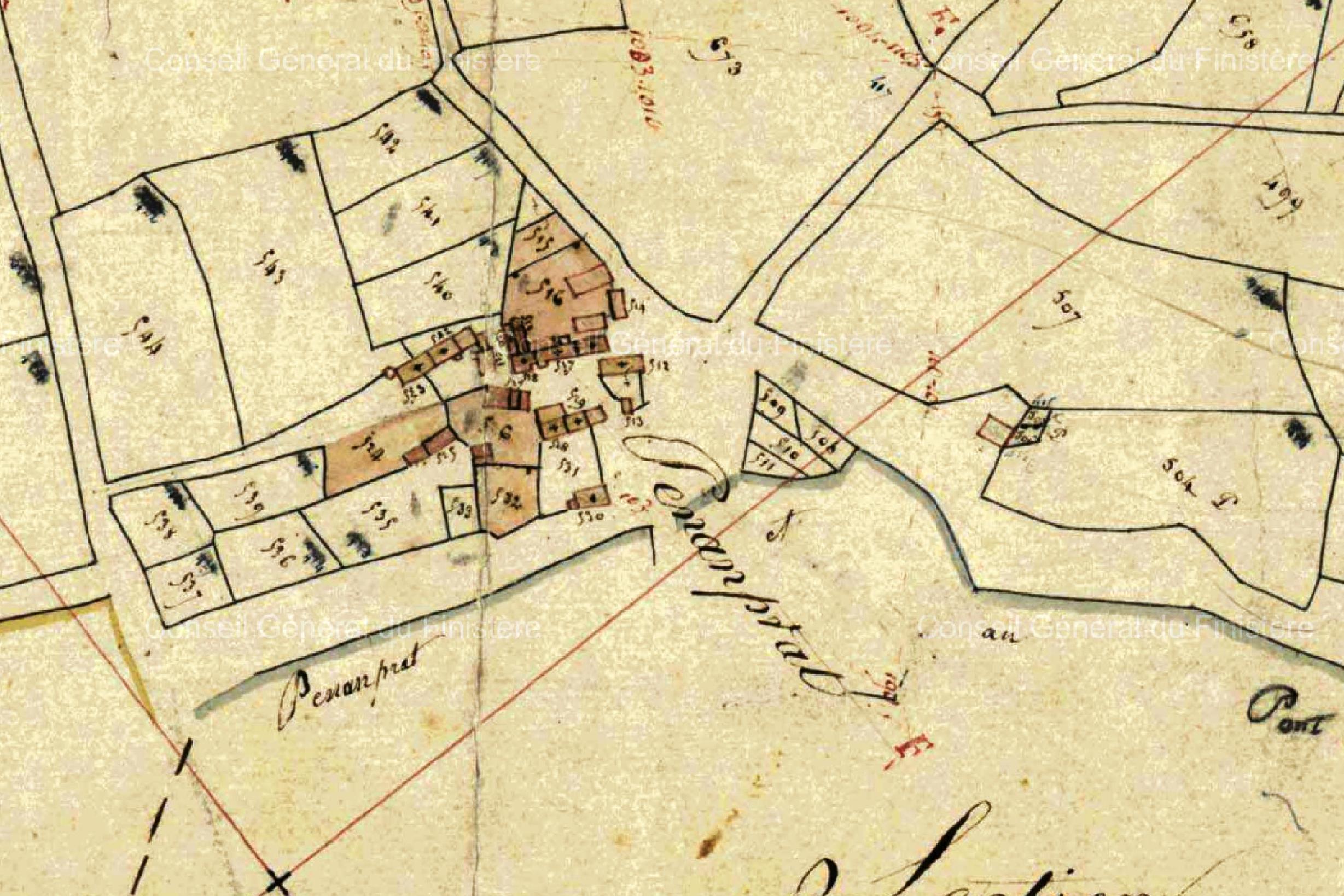 Extrait du plan du cadastre napoléonien de la commune de Irvillac (parcelle communale à proximité de n°A504)Immatriculation