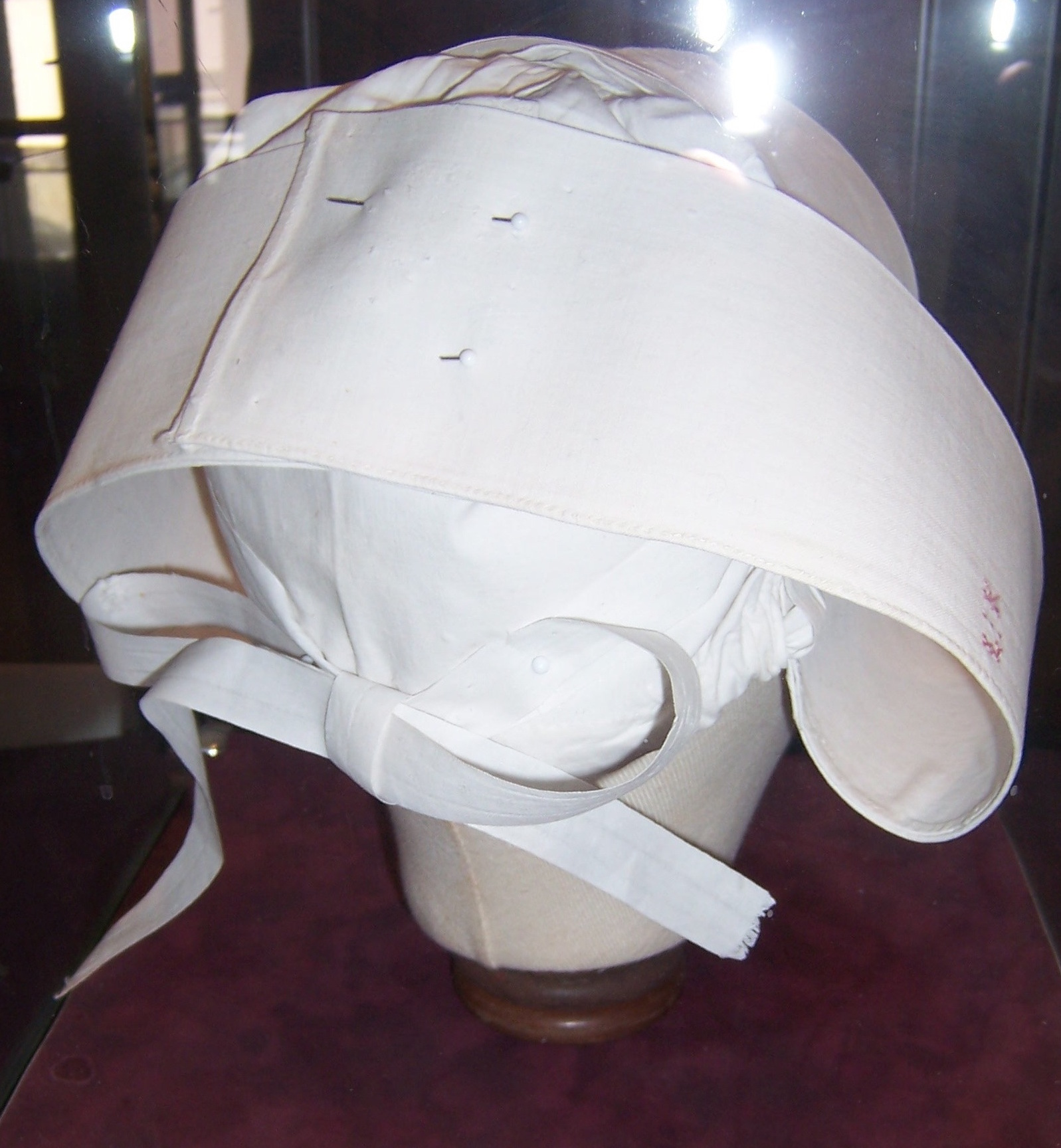 Cett coiffe en coton a précédé la coiffe en tulle brodé et non brodé et celle en filet manuel. Photo prise au musée du Marquisat à Pont-Croix (29)Immatriculation