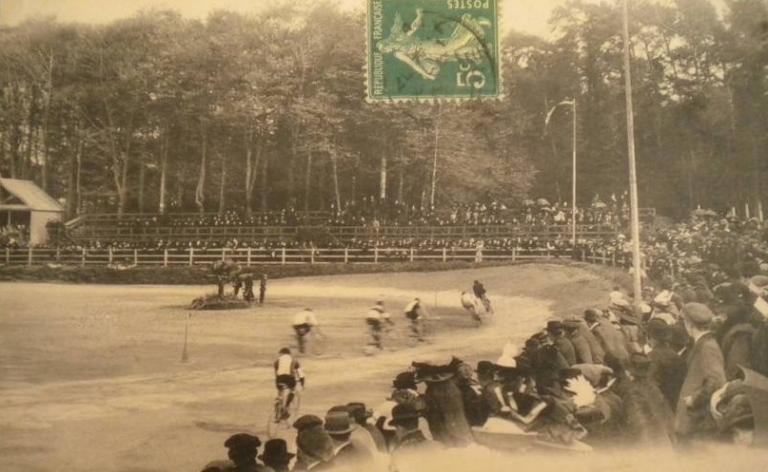 Six coureurs cyclistes sur la piste du vélodrome de Kernéguès (v.1910)Immatriculation