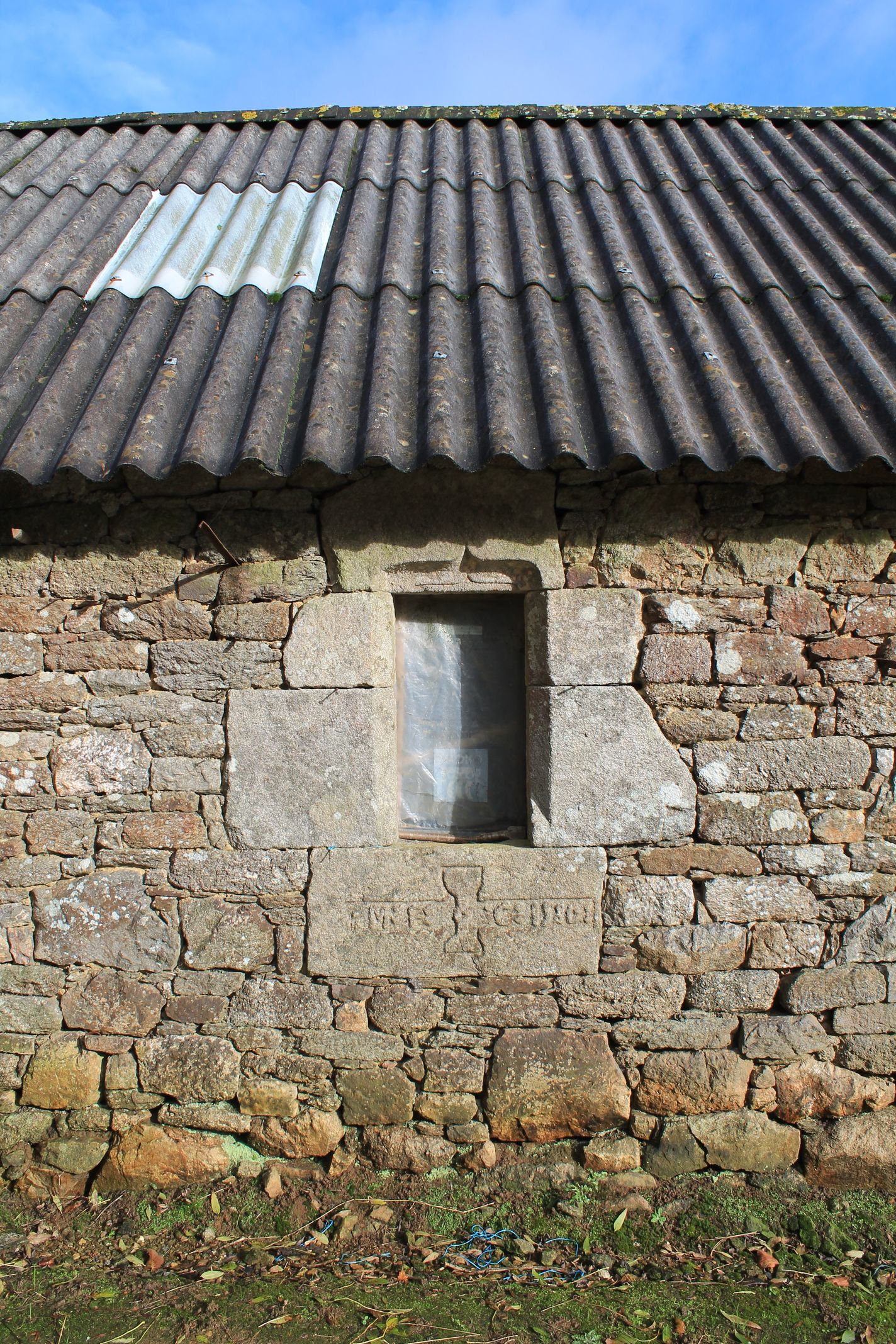 Botsorhel, Tromolouarn, ferme : fenêtre 16e siècle en granite avec calice sculpté, maçonnerie de granite, couverture contemporaine en ciment amianteImmatriculation