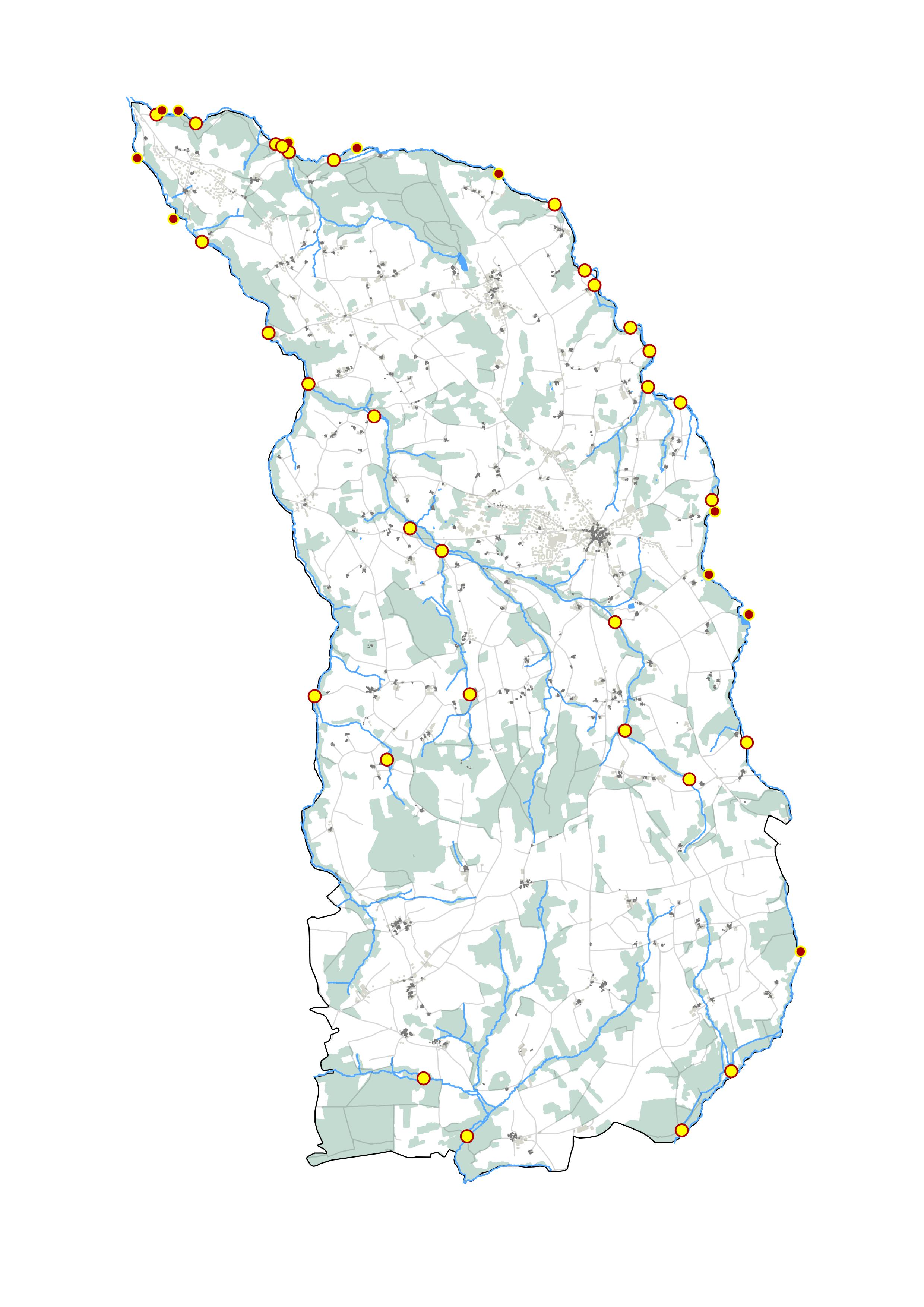 Plougonven : carte des anciens sites de moulins, en jaune les moulins sur la commune, en rouge les moulins sur les communes limitrophesImmatriculation