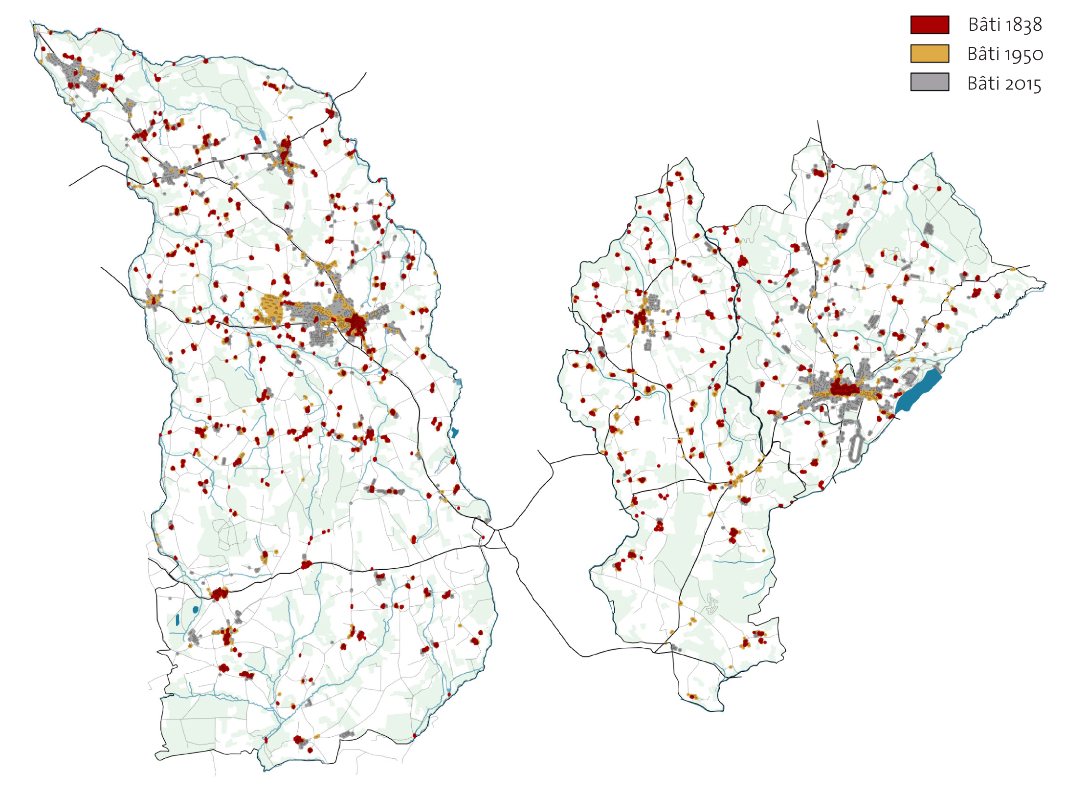Carte d'évolution de l'implantation du bâti au nord-est du Parc d'Armorique - Plougonven, Botsorhel et GuerlesquinImmatriculation