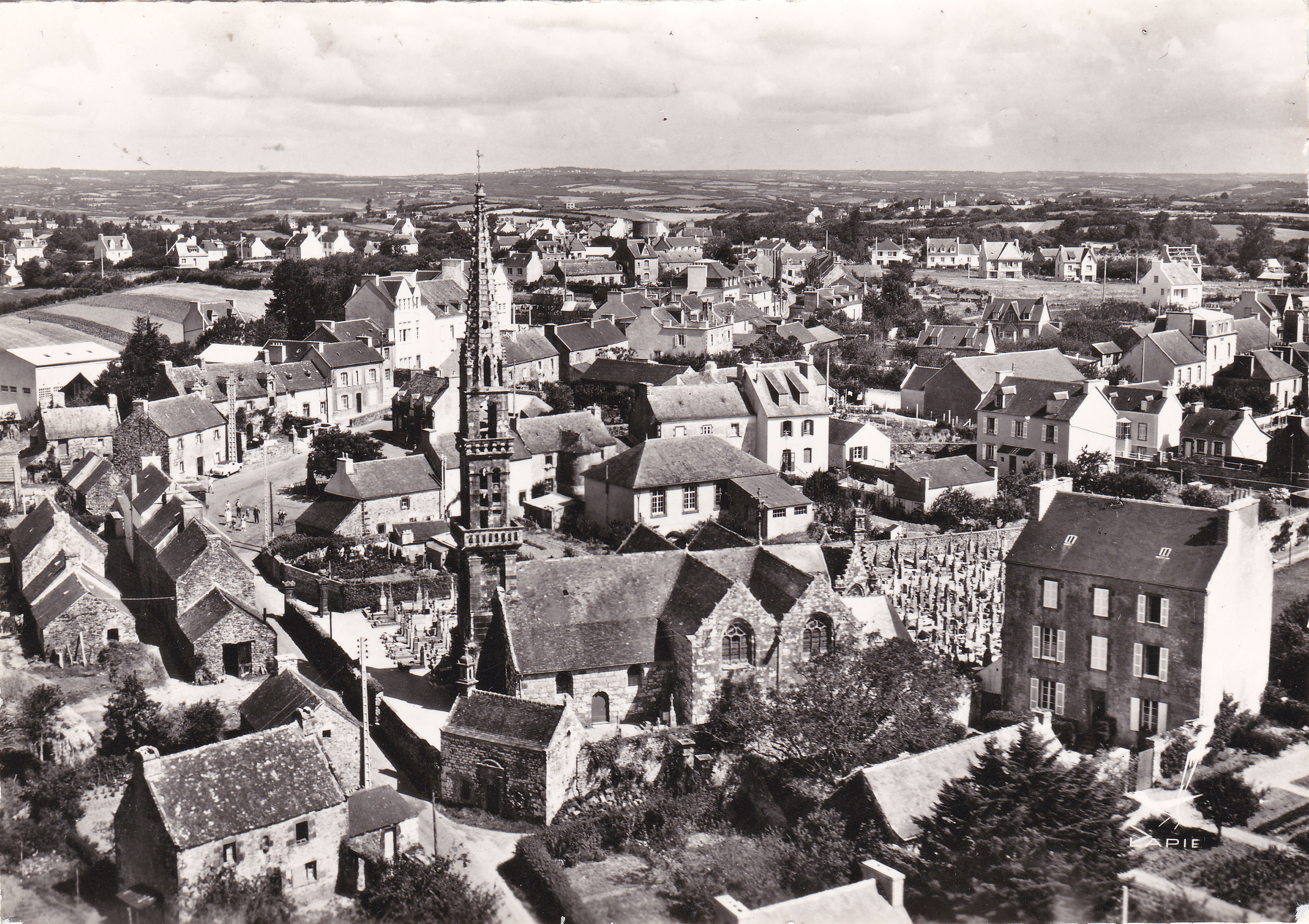 Logonna-Daoulas, bourg - vue aérienne sud sur l'église (carte postale ancienne, éditions Lapie)Immatriculation