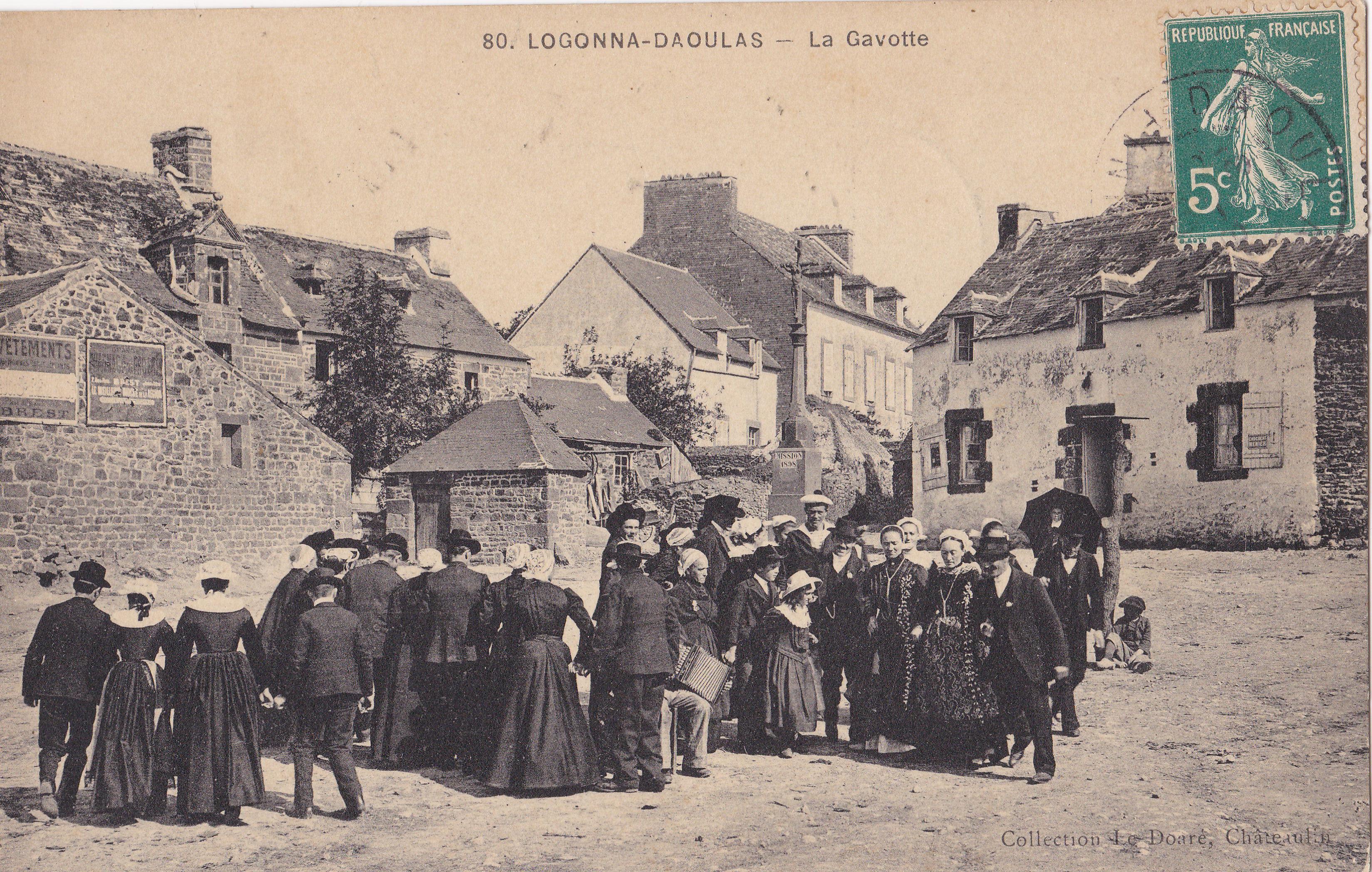 Logonna-Daoulas, bourg - La place centrale, danse bretonne (carte postale ancienne, éditions Jos)Immatriculation