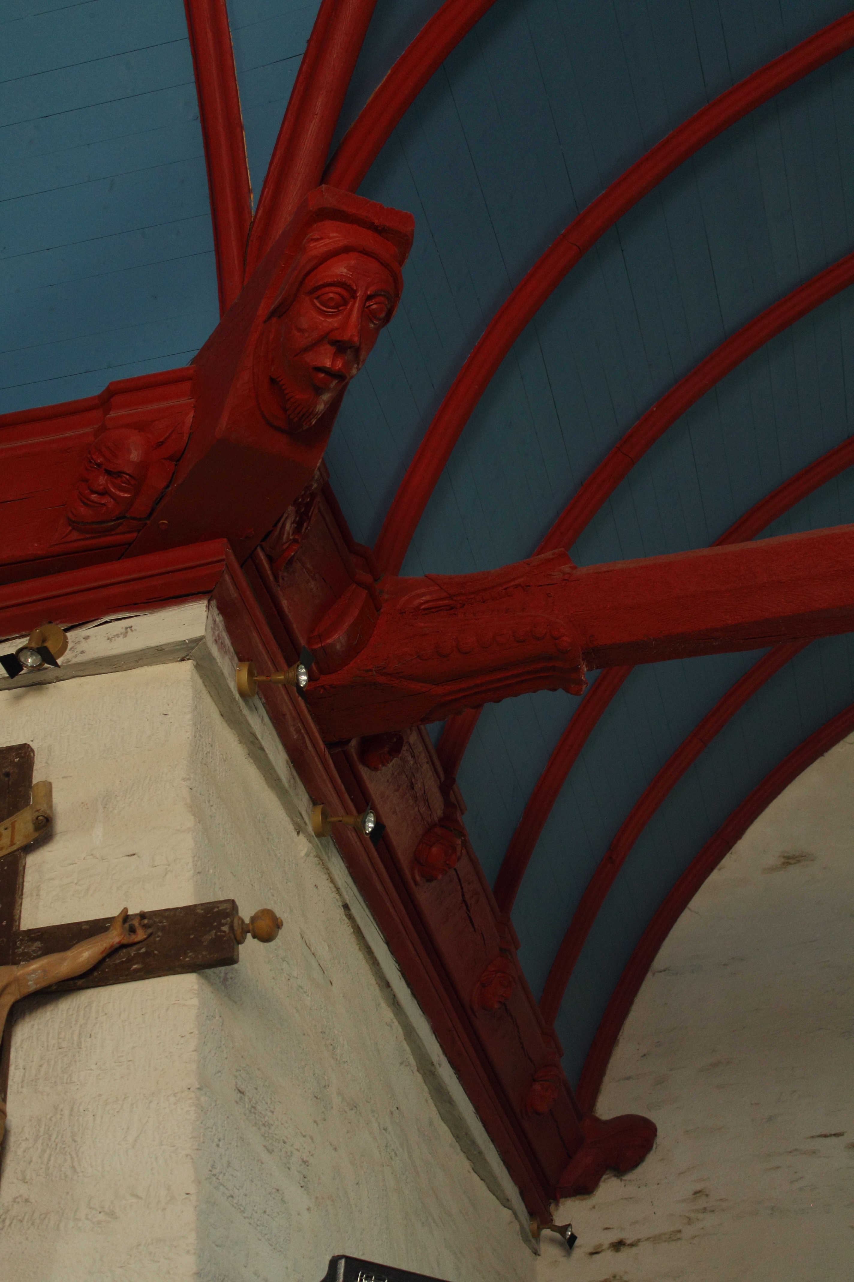 Saint-Coulitz, église paroissiale - vue intérieure, détail des sablières du transeptImmatriculation