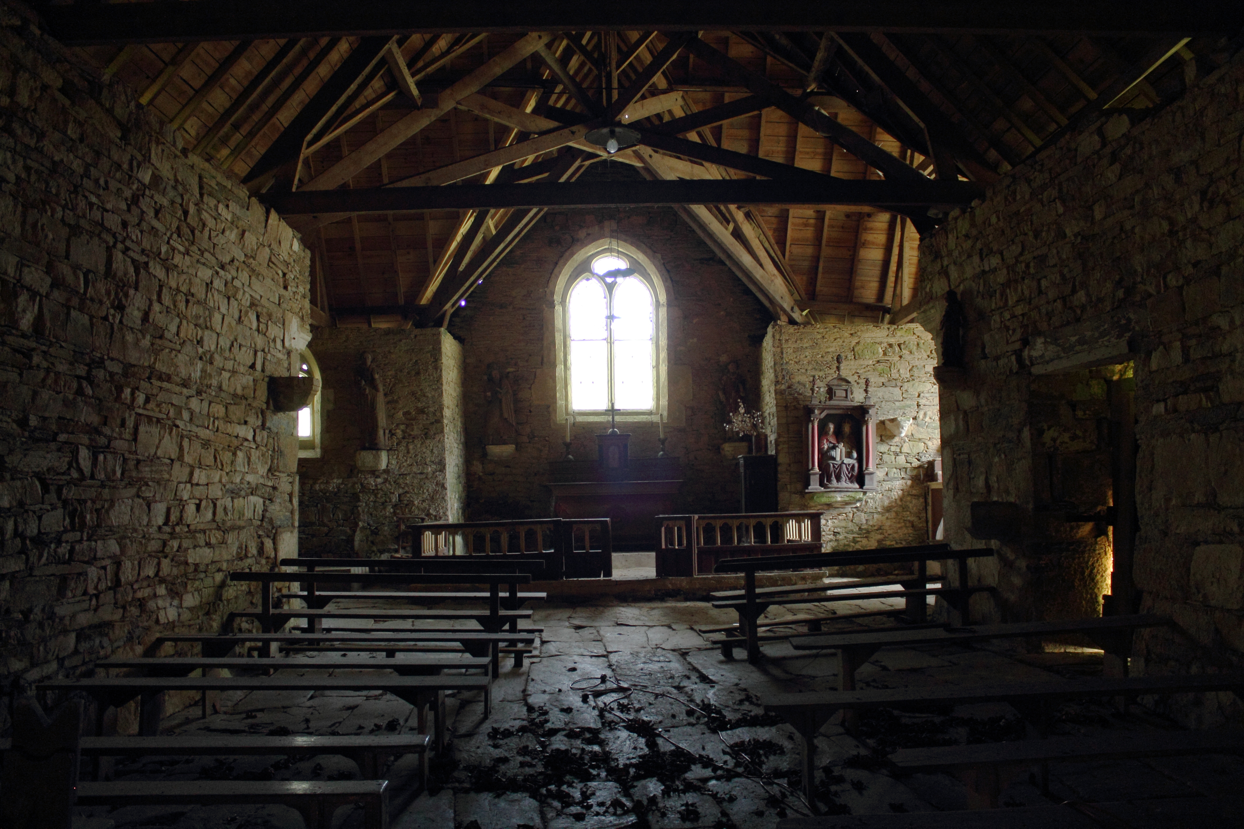 Saint-Coulitz, chapelle Saint-Laurent - Vue intérieure vers le choeurImmatriculation