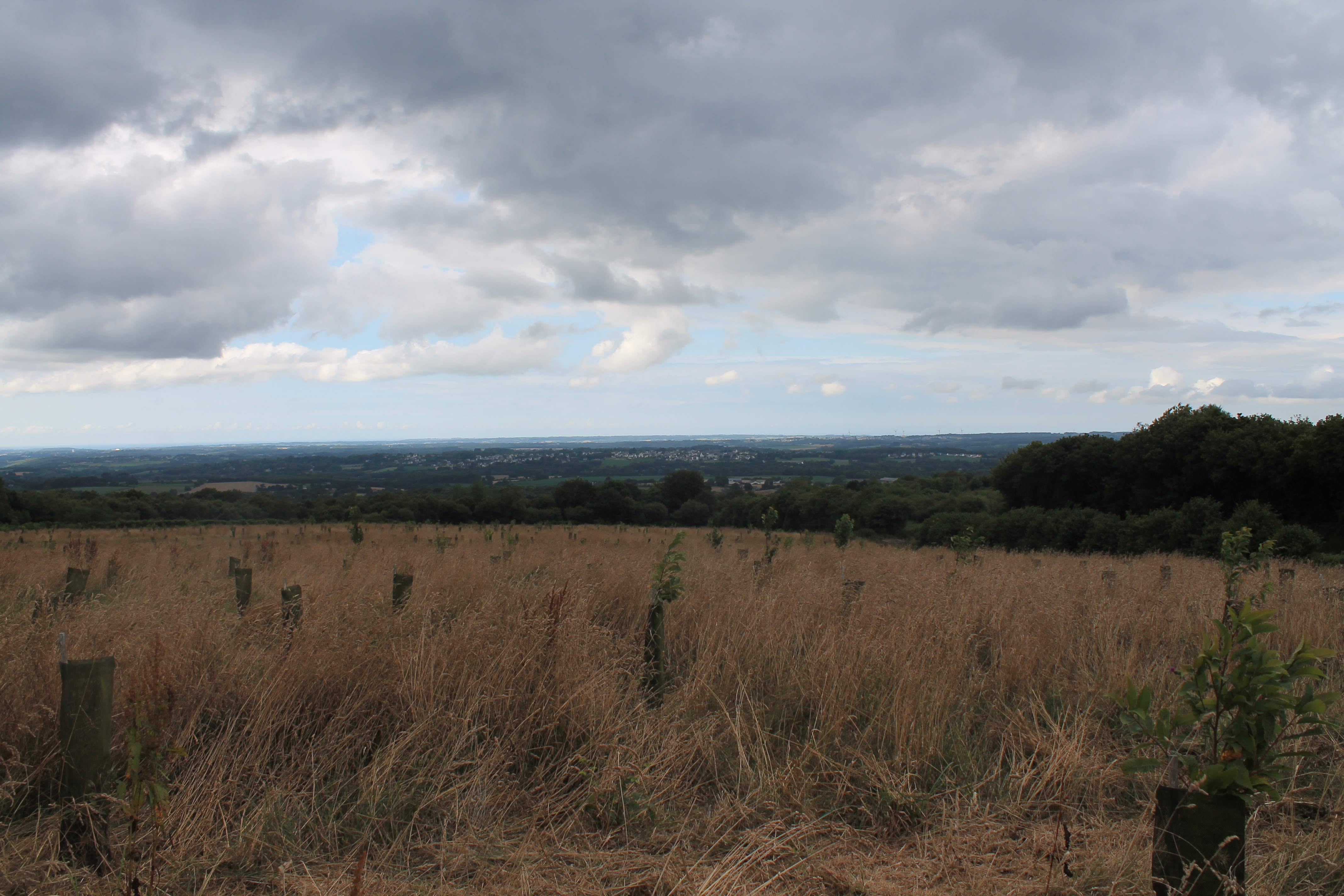 Plougonven - paysage en hauteur proche de le Quilliou, le bourg est visible en arrière planImmatriculation